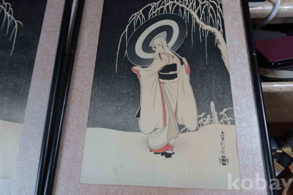 하세가와 사다노부의 대표작 눈과 게이샤 오리지날 목판화 임니다 섬세 정교한 명화 이며 일본 목판화의 정수 임니다 오리지날 액자를 가진 명품