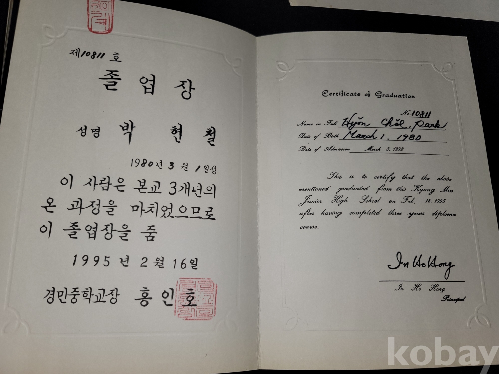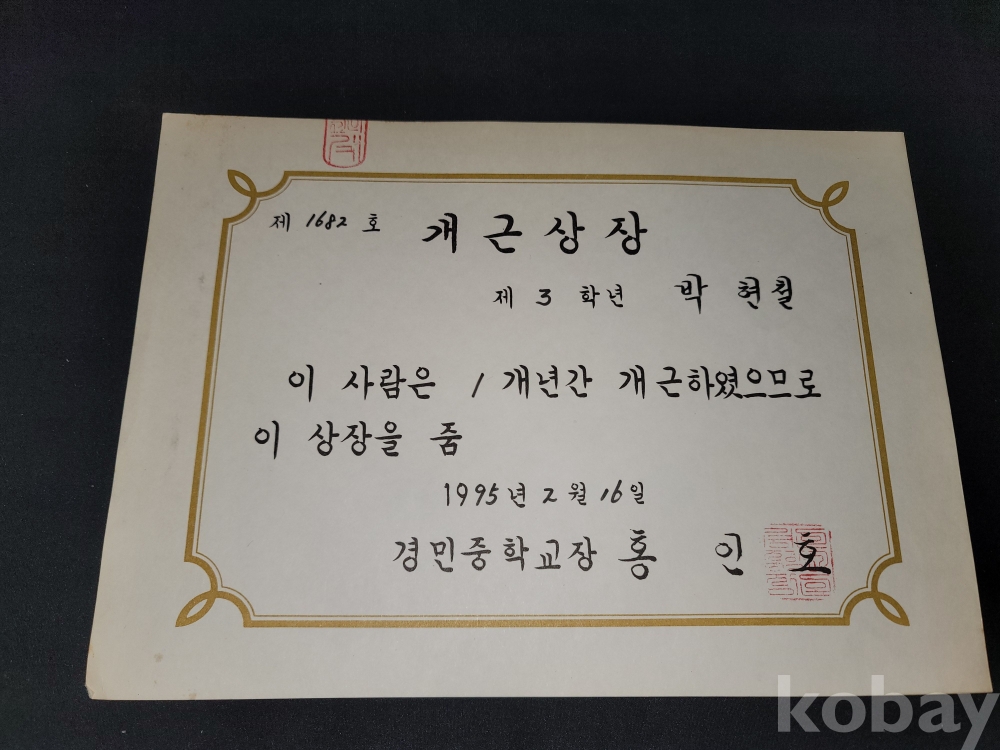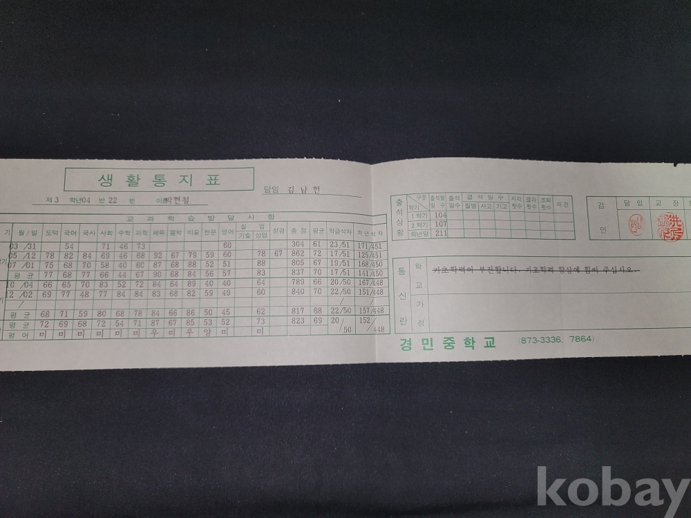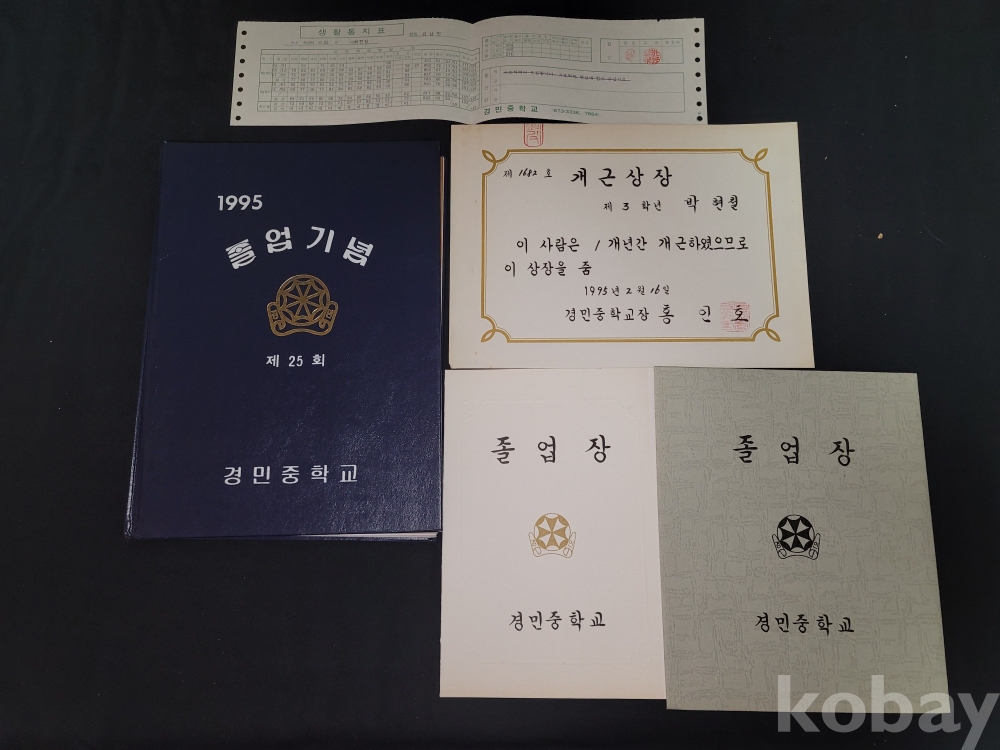 빈티지 1995년 경민중학교 졸업앨범과 생지표, 상장, 졸업장 등 일괄입니다.