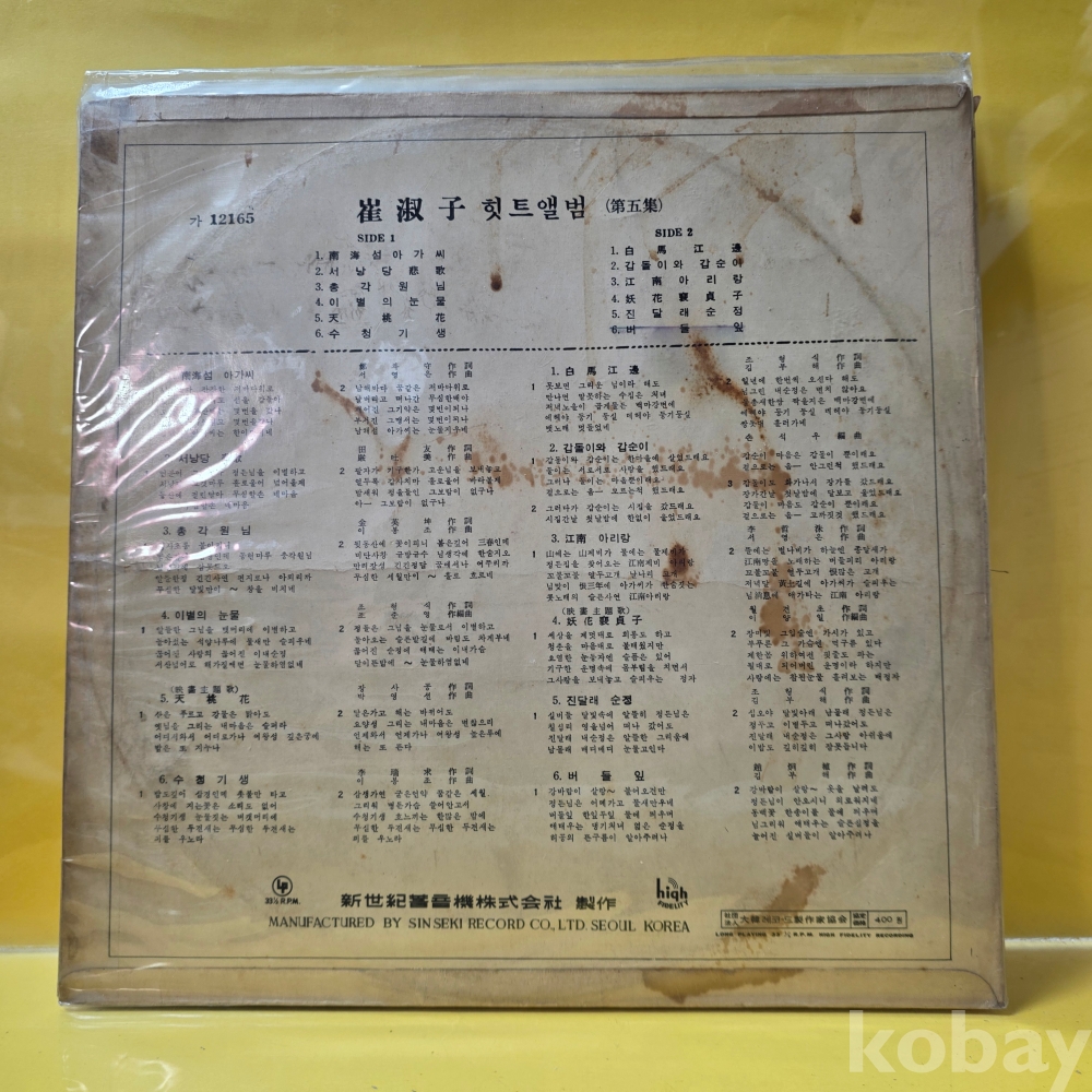 | 자켓상태 | EX : 약간의 마모, 모서리 찢김 존재 | 음반상태 | EX : 재생에 영향 없는 가벼운 기스 존재 | 발매정보 | 초반 | 가사지여부 | 무 |