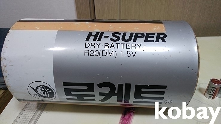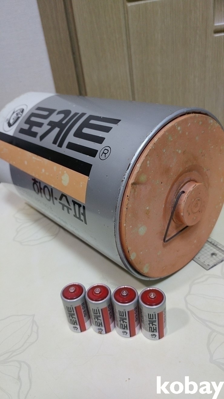 추억의 로케트 밧데리 건전지 홍보용 대형 통 입니다 대형통& 작은건전지4개 포함