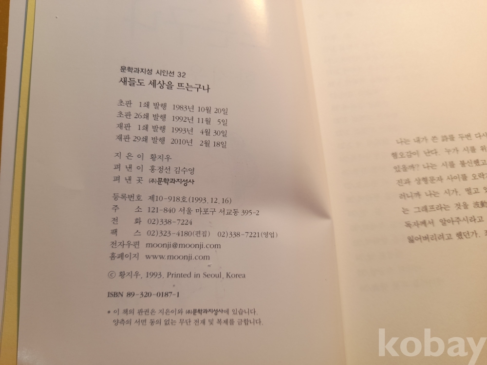 문락과 지성 시인선 * 황지우 시집 새들도 세상을 뜨는구나
