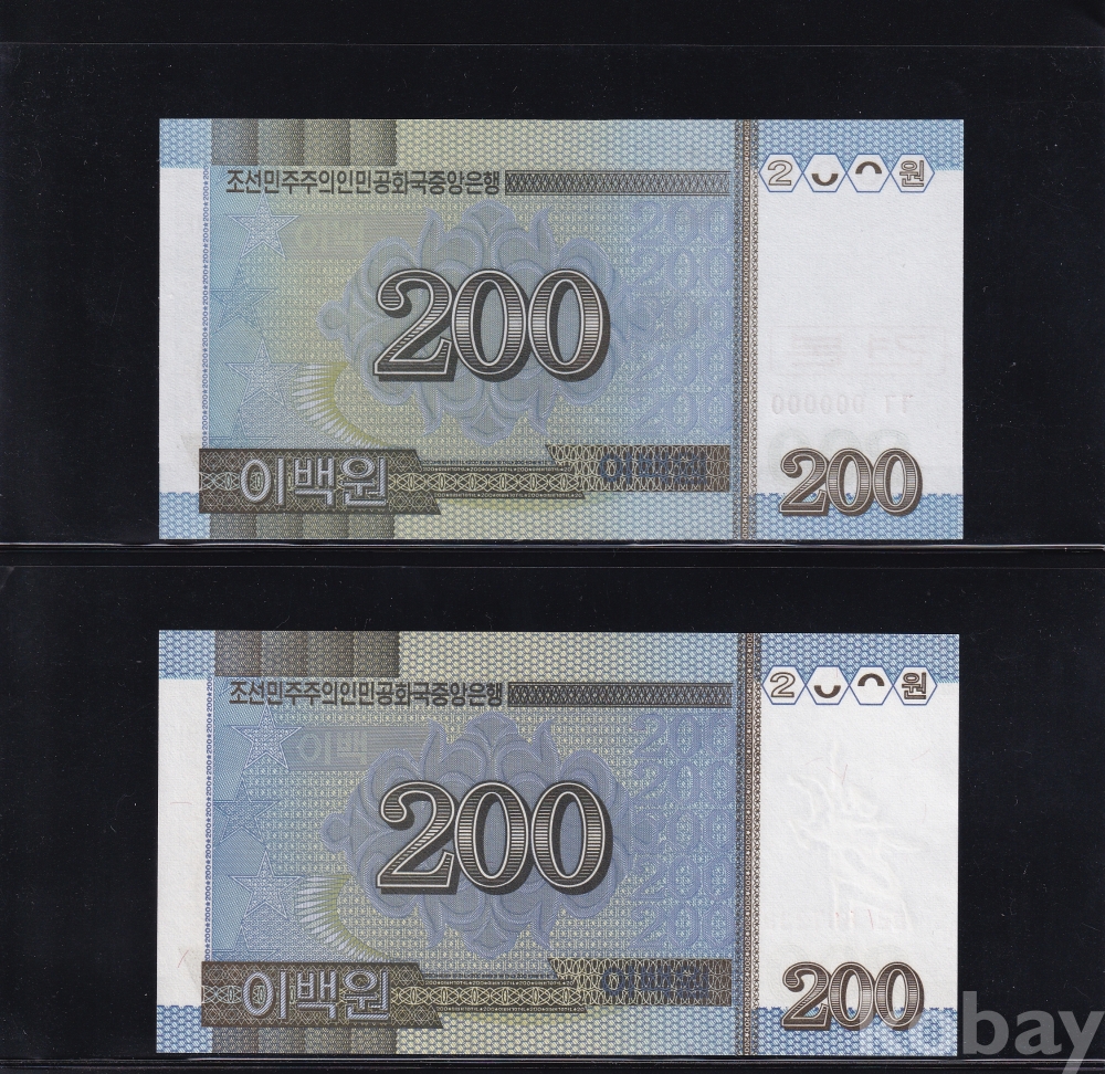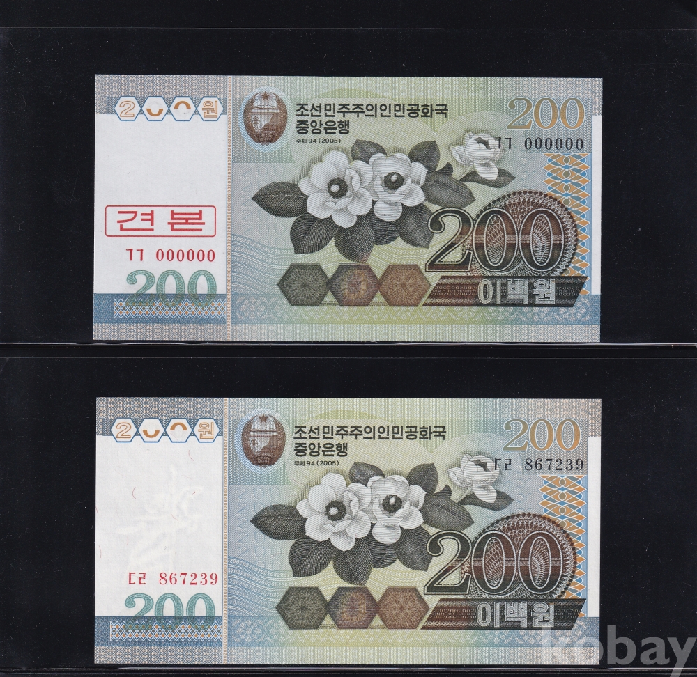 - 윗동네 2005년 이백원 000 견본 / 이백원 통용권 미사용 지폐 - 2장 일괄