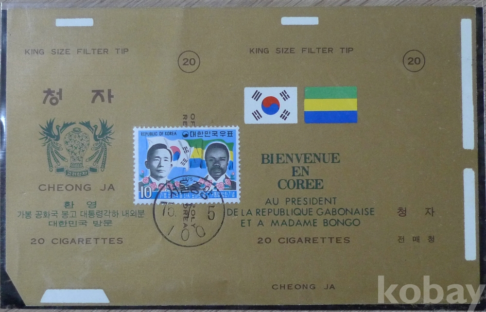 1975년 가봉 봉고 대통령 방한 기념 청자 담배 포갑지 - 기념우표와 소인 -