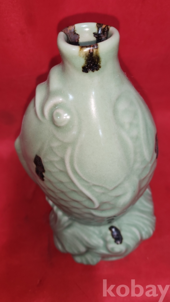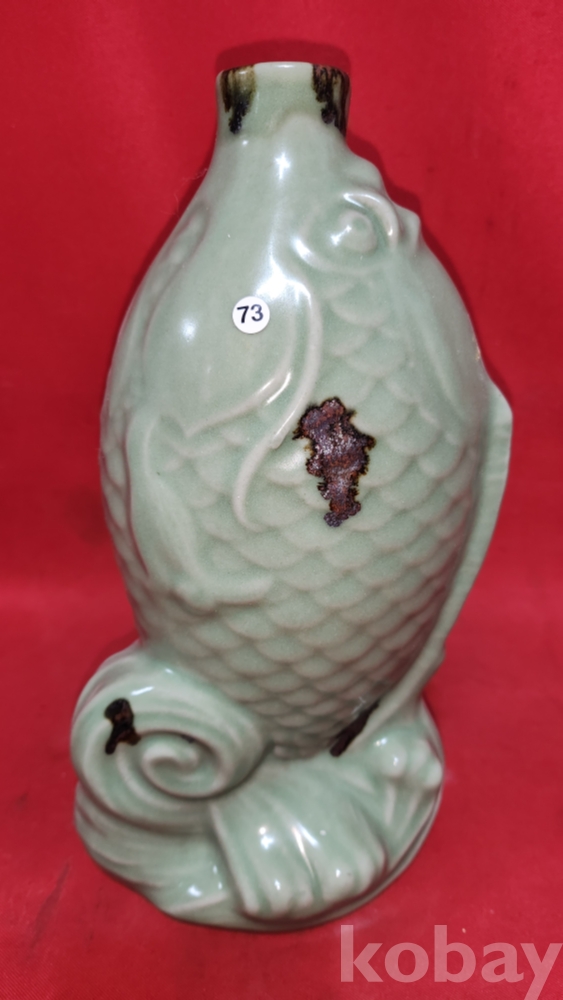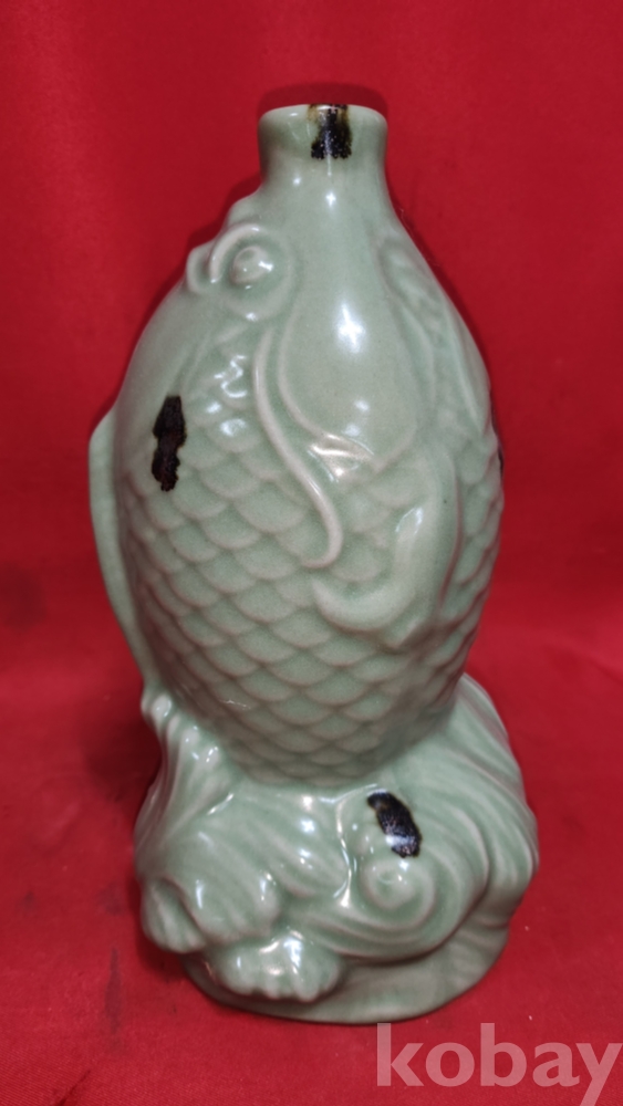 비색청자 (翡色靑磁) 양귀달린 소나무와 호랑이(松虎) 문양 광구병입니다,