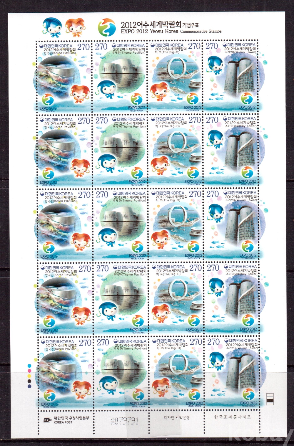 (한국전지) 2012.5.11 2012 여수 세계박람회 sheet of 20 MNH