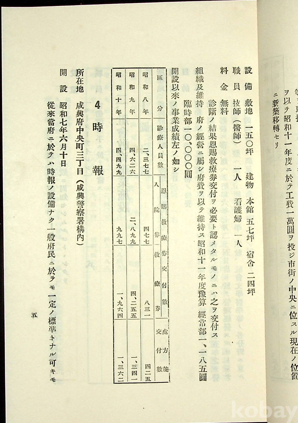 설립연도 시설에서 주요사항, 예를들면 병원소개 부분에서는 환자의 현황도 제시하고 있으며