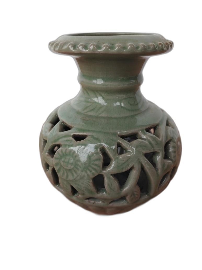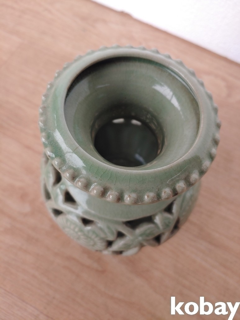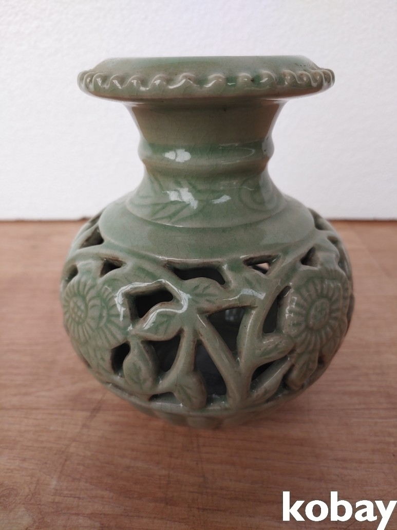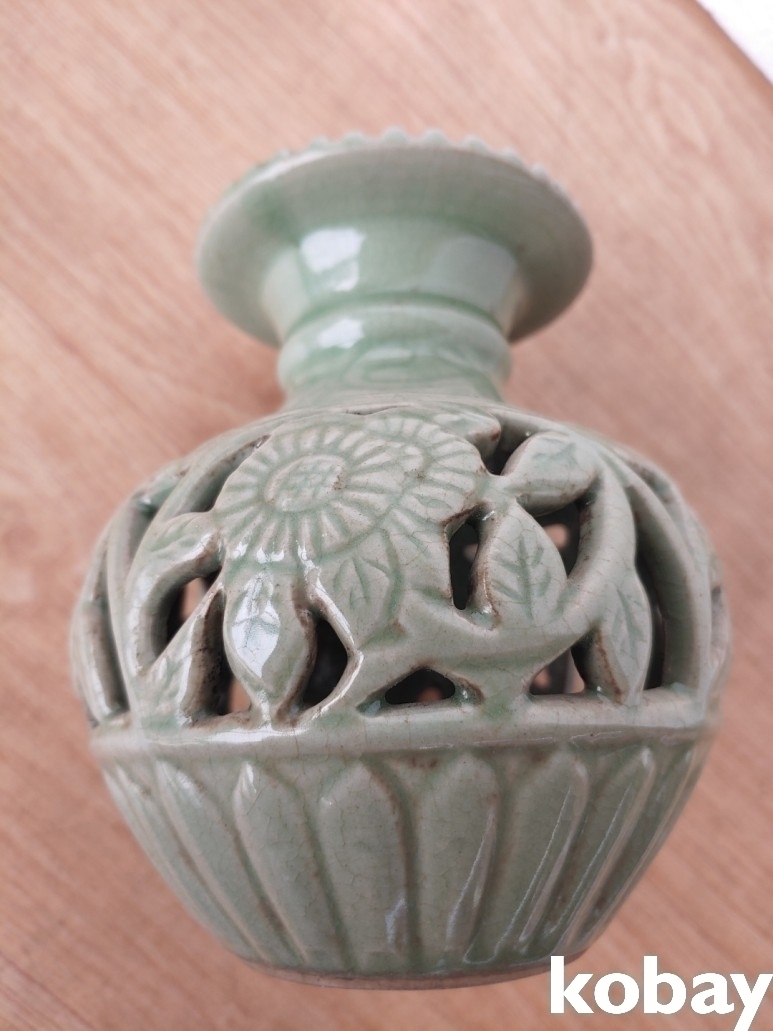 꽃 문양 투각 도자기 입니다.