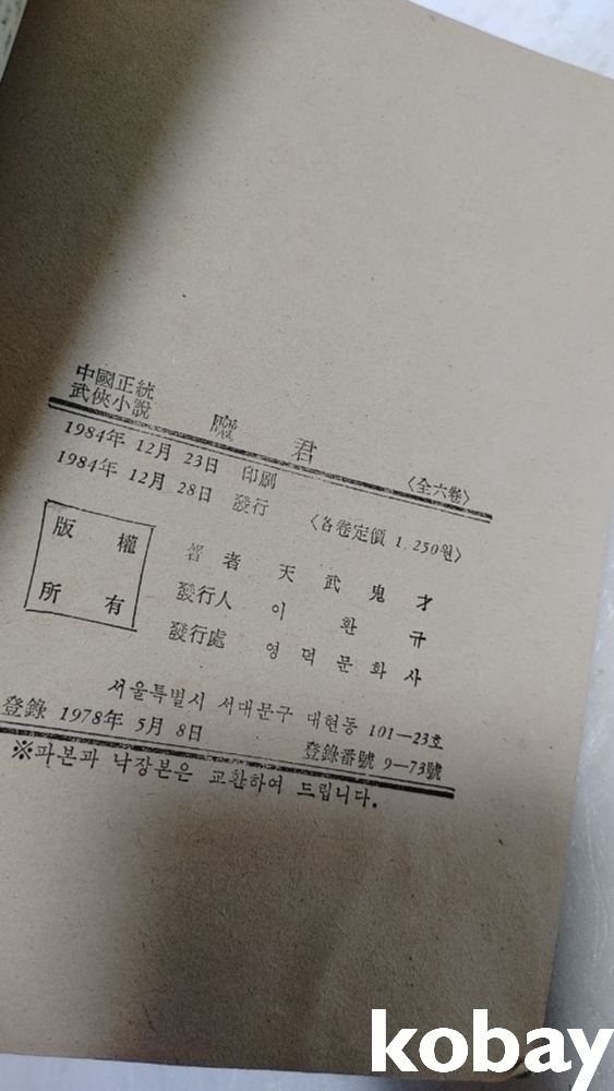 1984년 마군 무협지 입니다