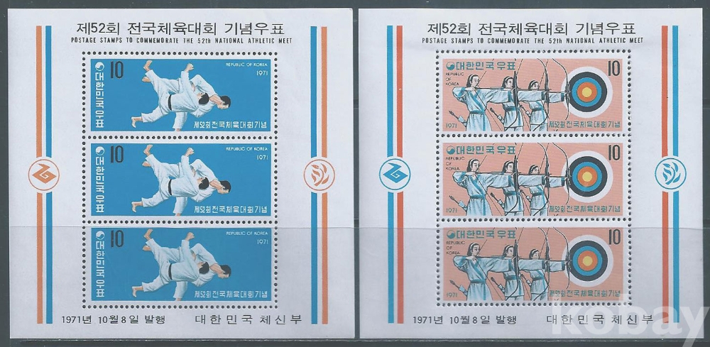(한국시트-911)1971년52회전국체전시트2종(미사용제)-MNH, VF