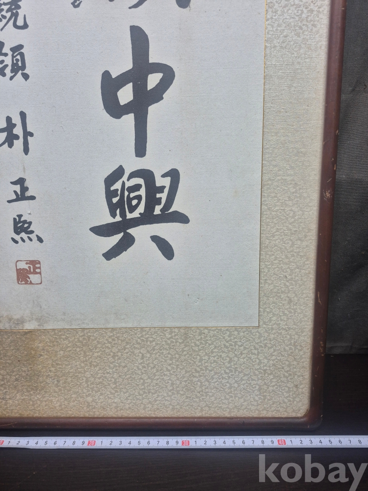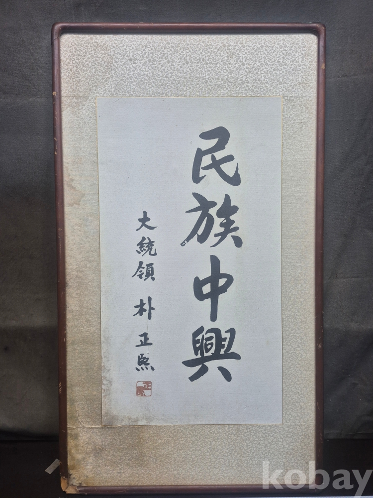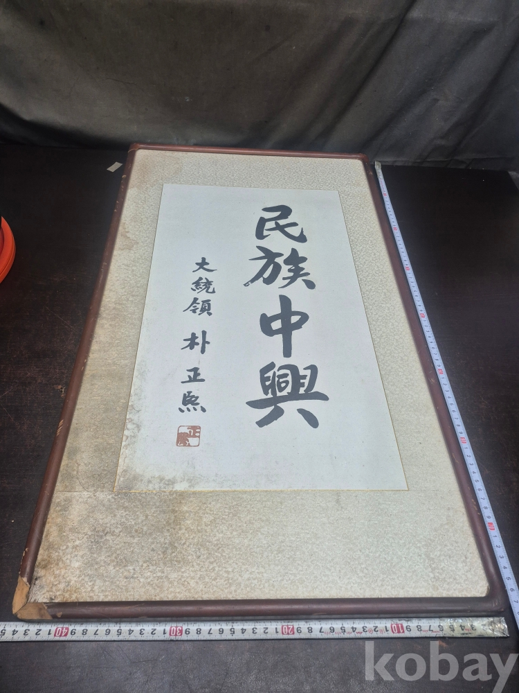 1970-80년대 원목액자에 박정희 대통령의 민족중흥 영인본 액자 떨어짐있어요 종이 변색 있읍니다 45*80*2