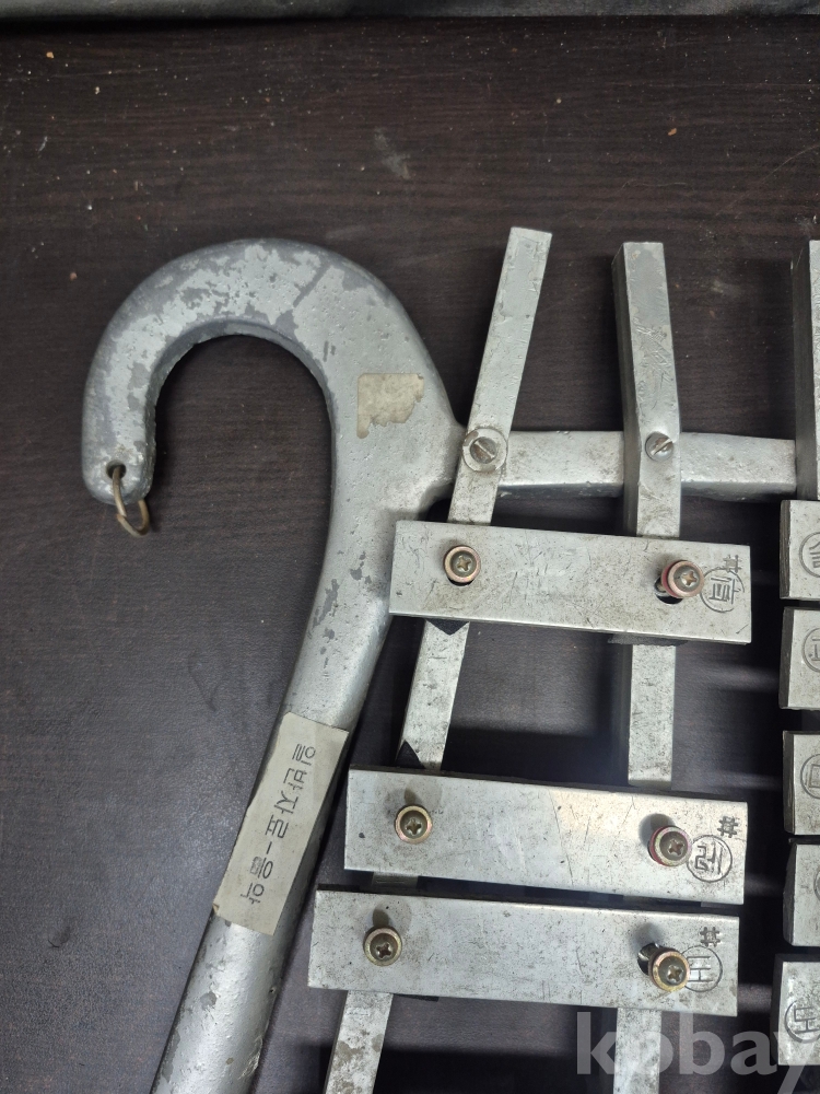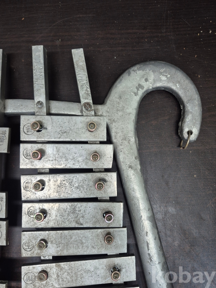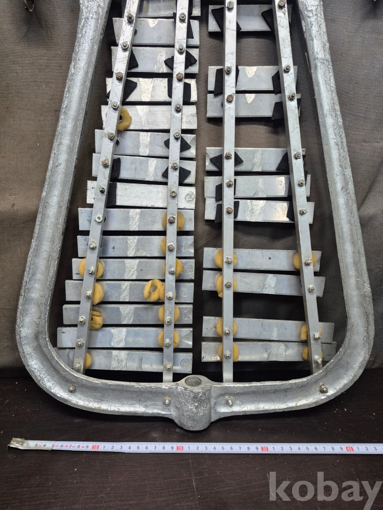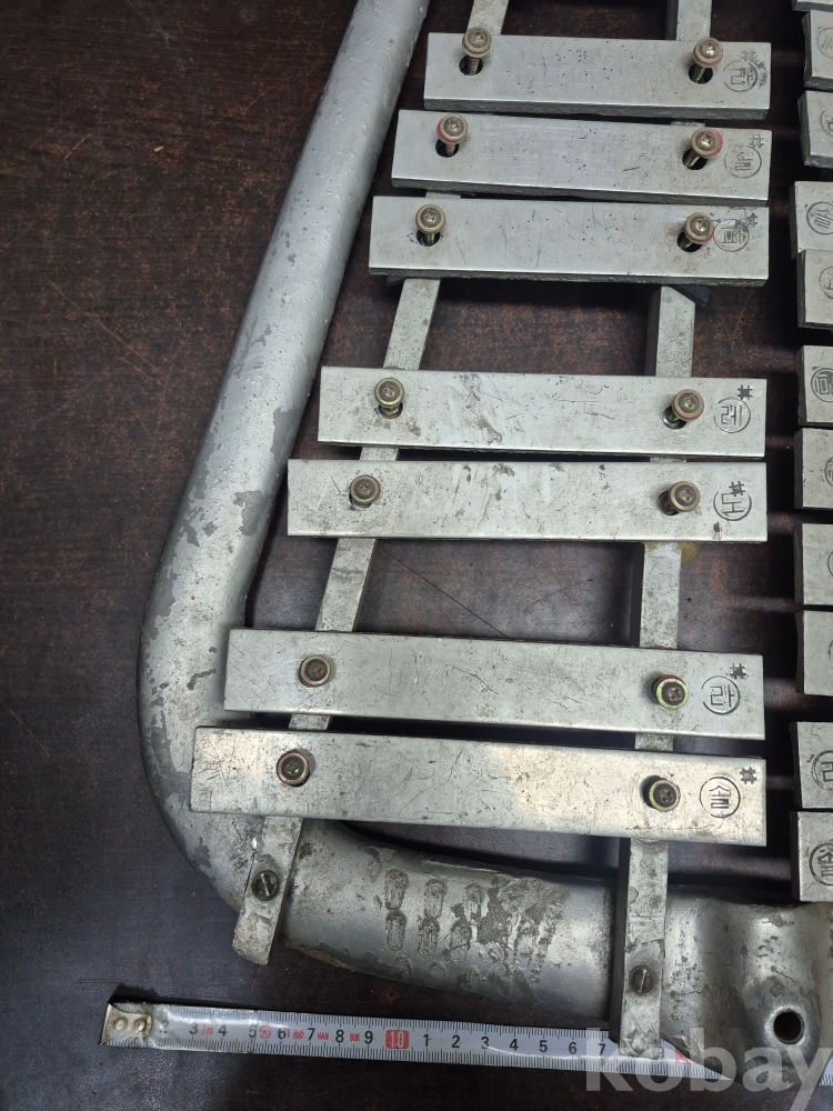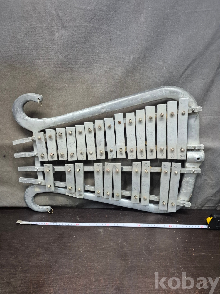 1960-70년대 사용하던 행진할때 쓰이는 벨리라 실로폰 과 원목 채 재질 알루미늄/ 주석 모르겟음 나사 빠짐 있어요 43*60*5