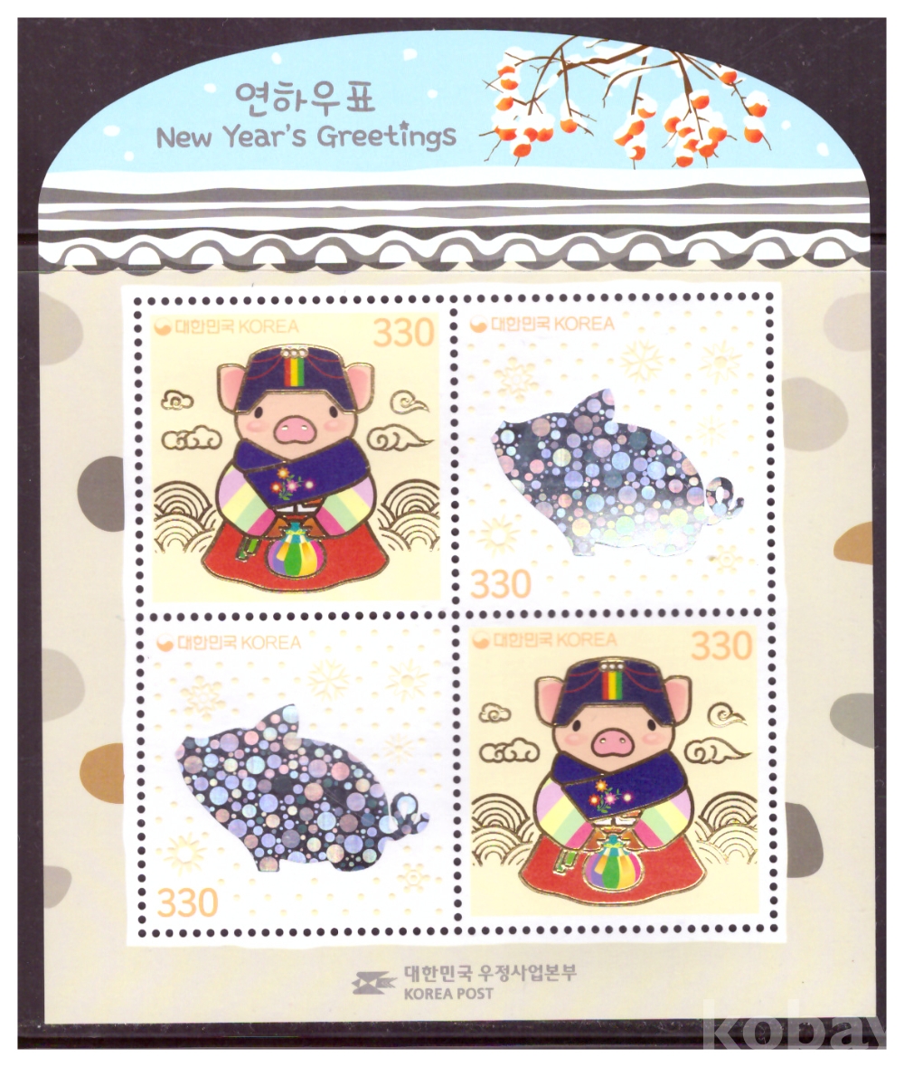 1. 설빔차림의 아가돼지(330원)+눈송이와 돼지(330원) (2x2)