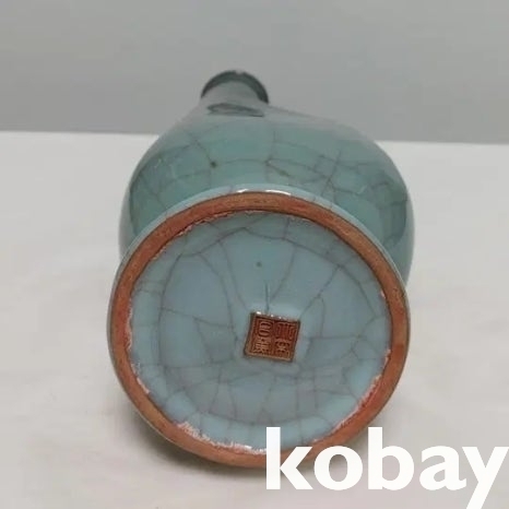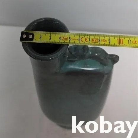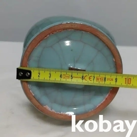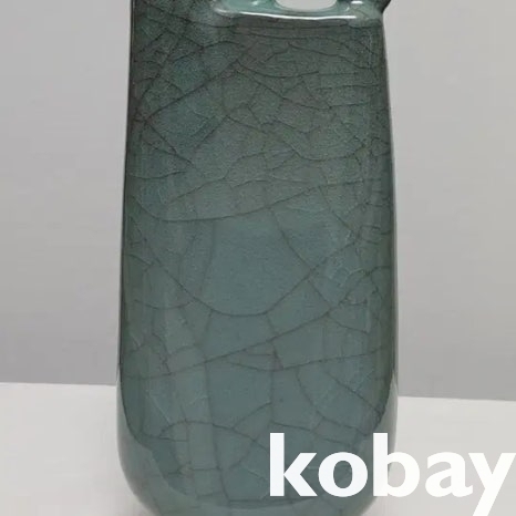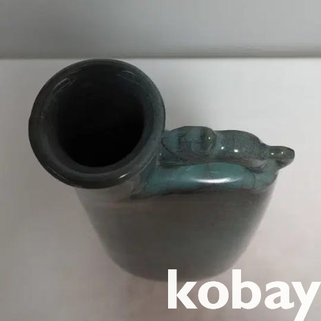 동물 모양의 손잡이가 있는 빙렬 도자기 입니다.