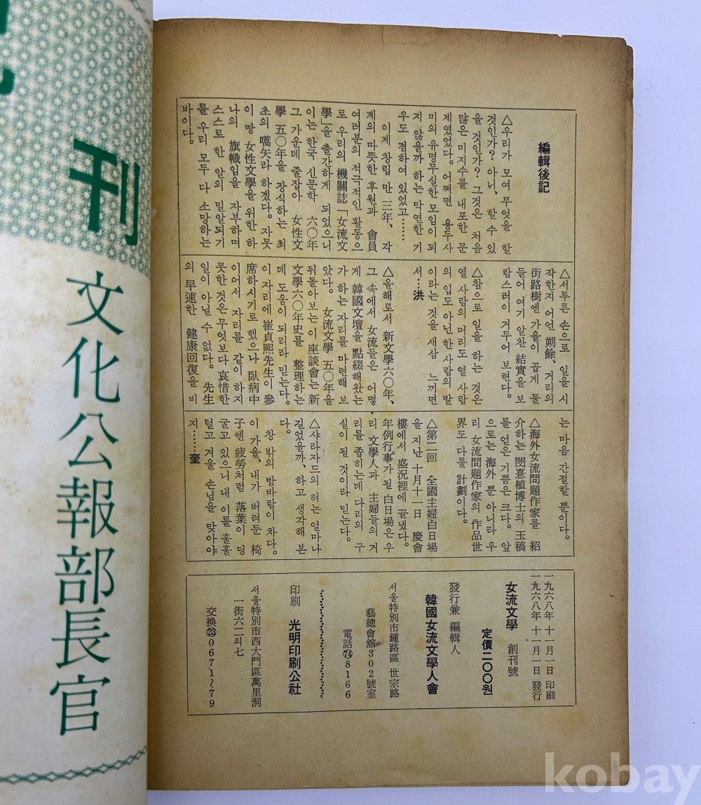 물 품 명 | <좋-았書! 1탄> [54] 1968년 발행, 천경자 장정의 [여류문학] 창간호 1책 | |||||