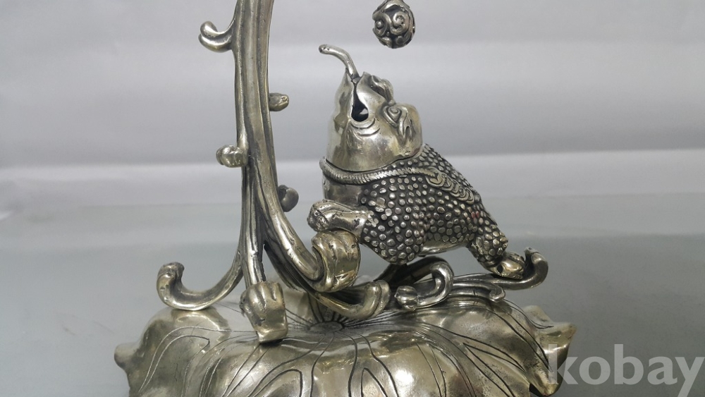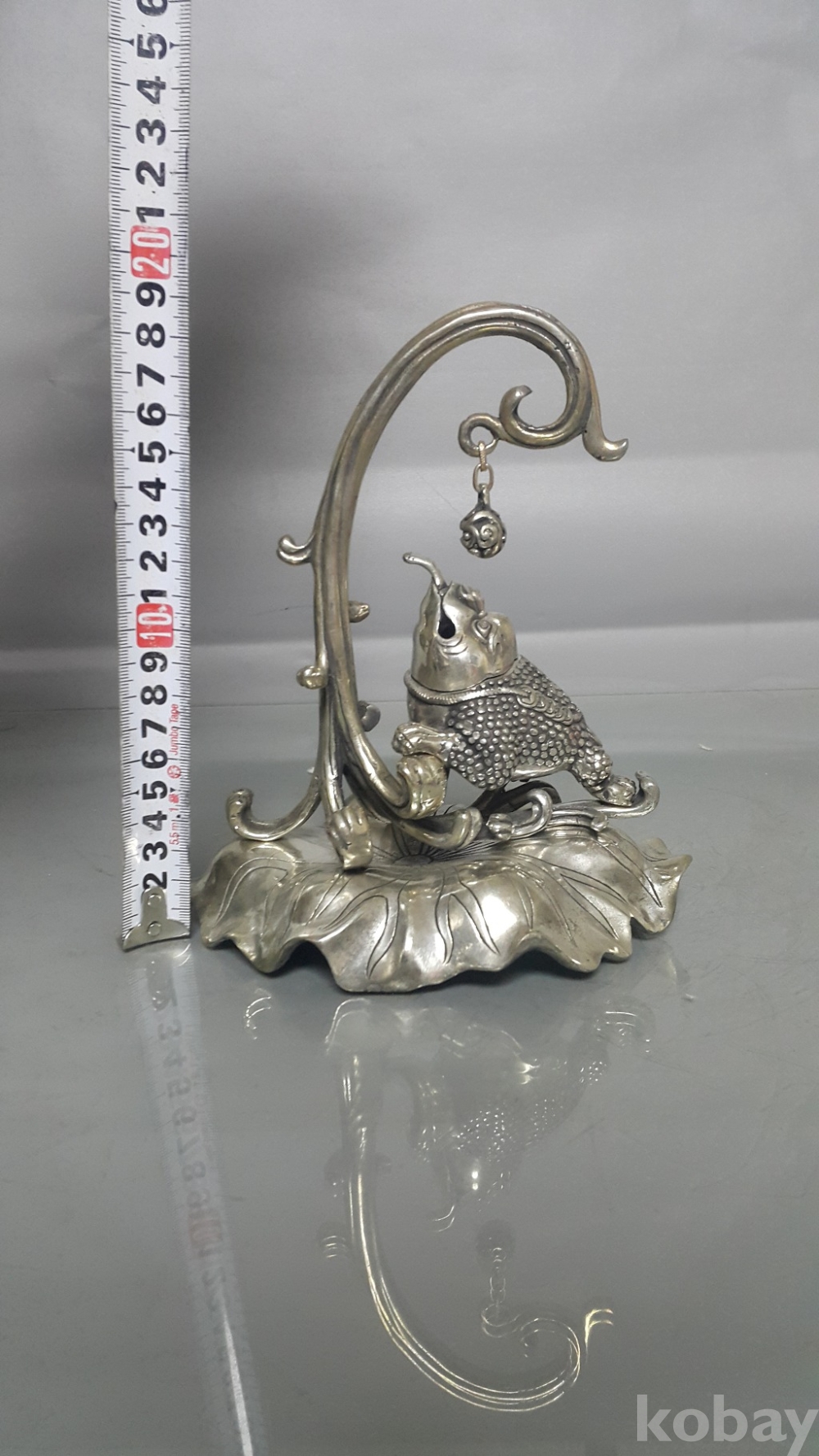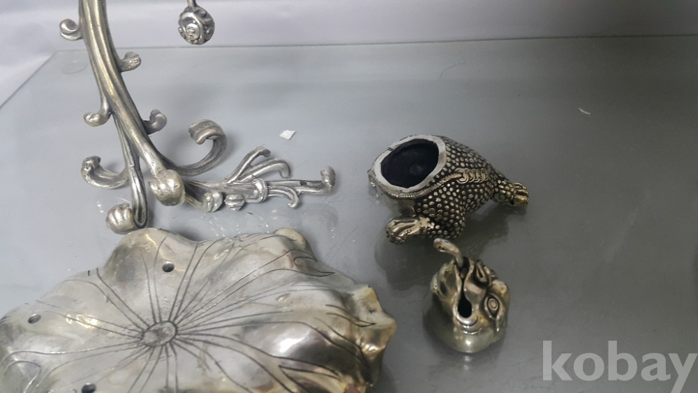 연잎 위에 앉아 열매른 먹는 모습의 해태 향로입니다. 분리형이라 조립과 개별 장식하여 다양한 인테리어 소품으로 활용이 가능합니다. 고급스러운 백동재질로 향로를 제작하였습니다