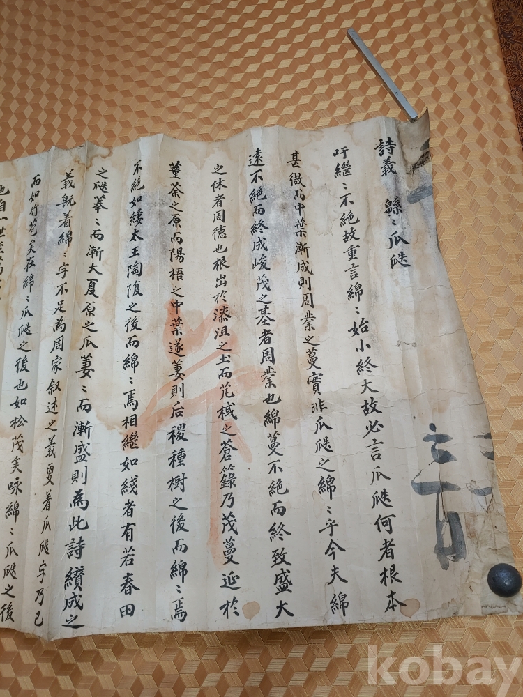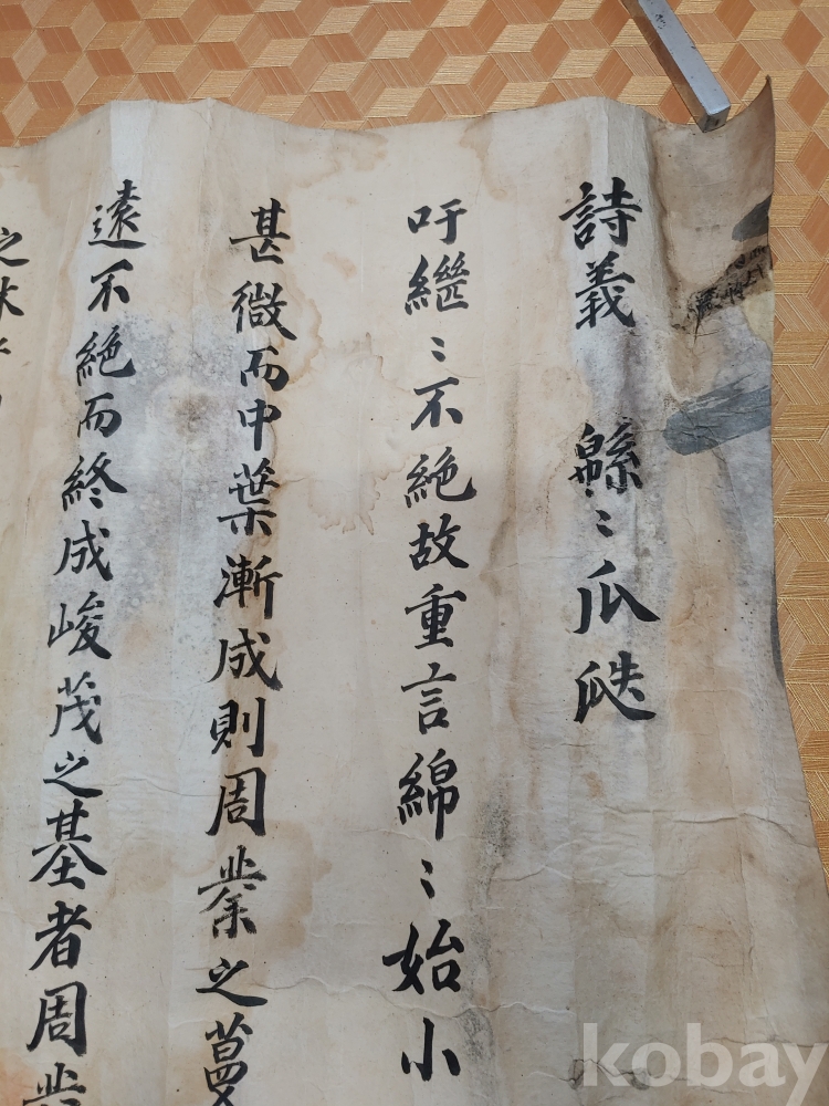 詩義로 시작하는 고문서...아주 두툼한 장지이며 앞부분이 짤려 있음 129.5*68.5