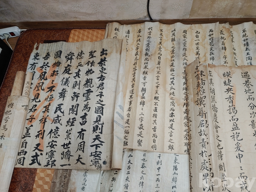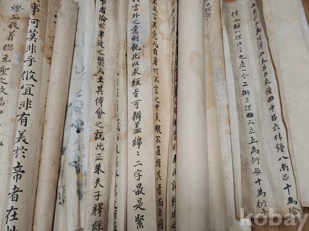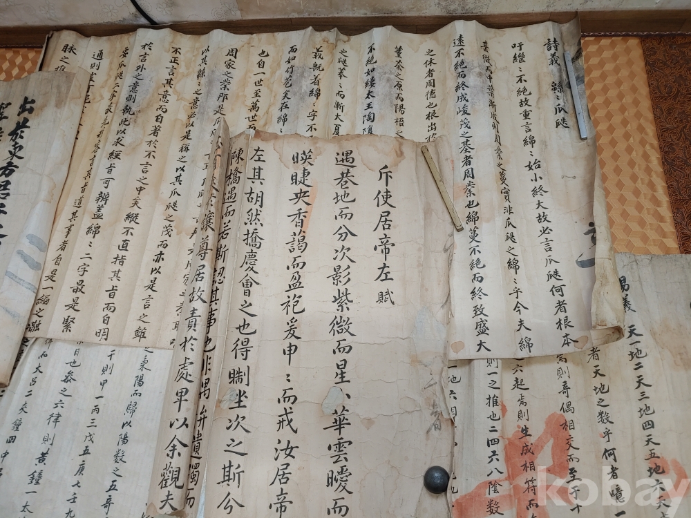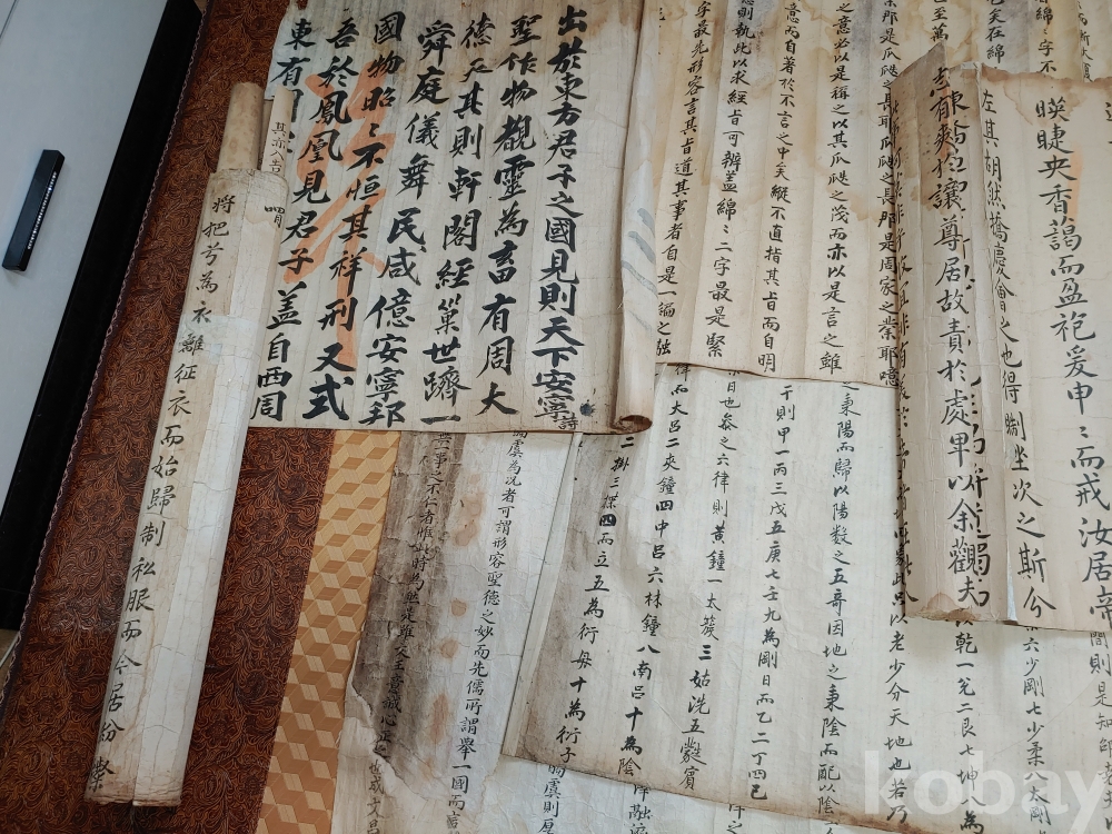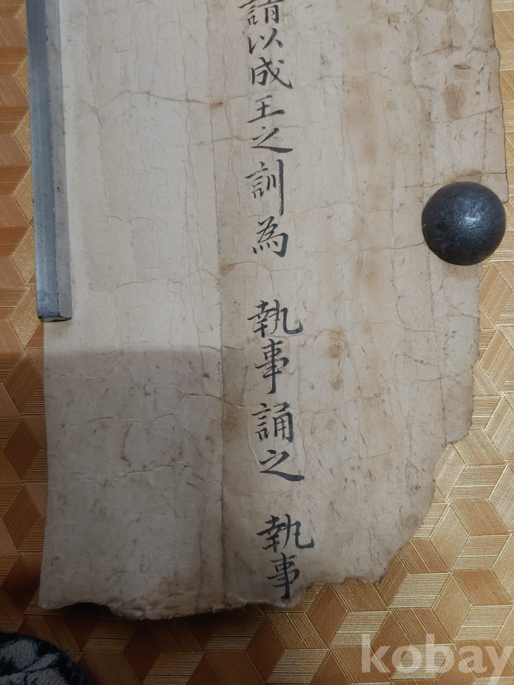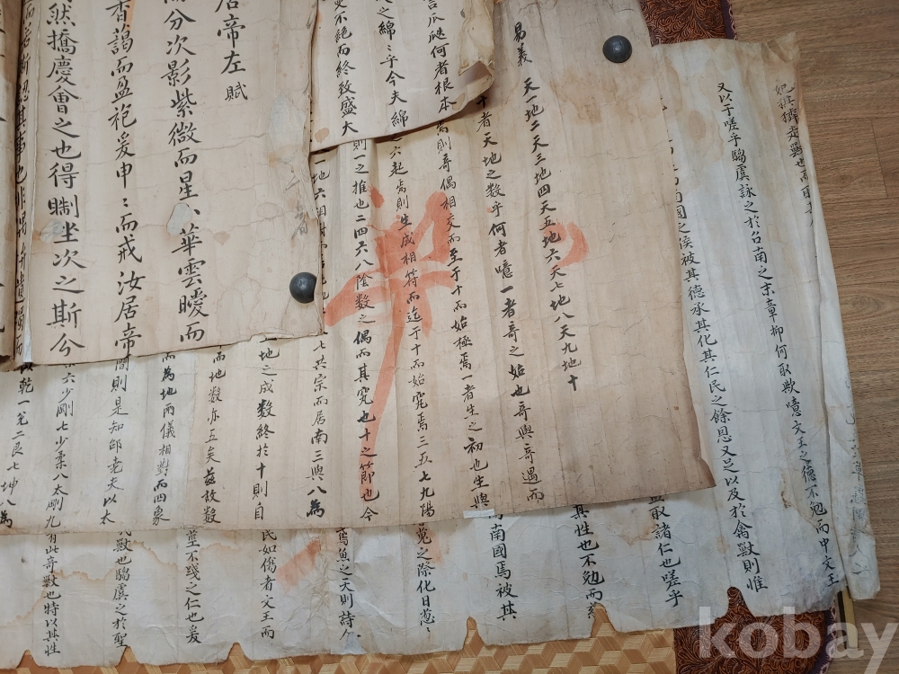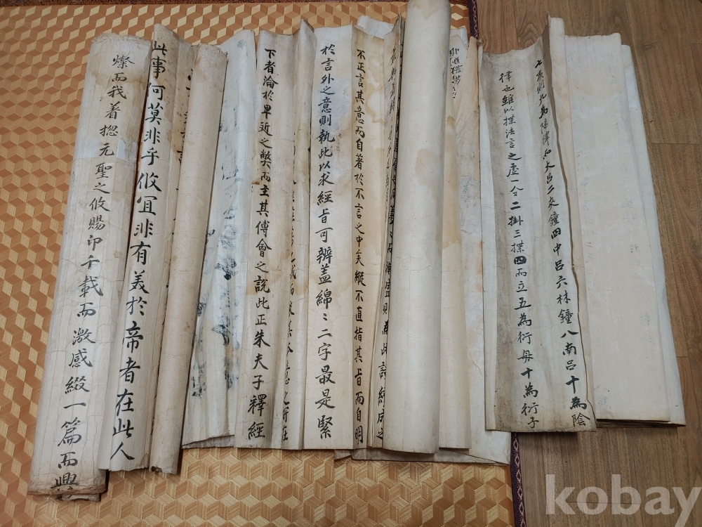 ""옛날 대형 고문서 필사본과 고문서 보관통 등 7종류 일괄""