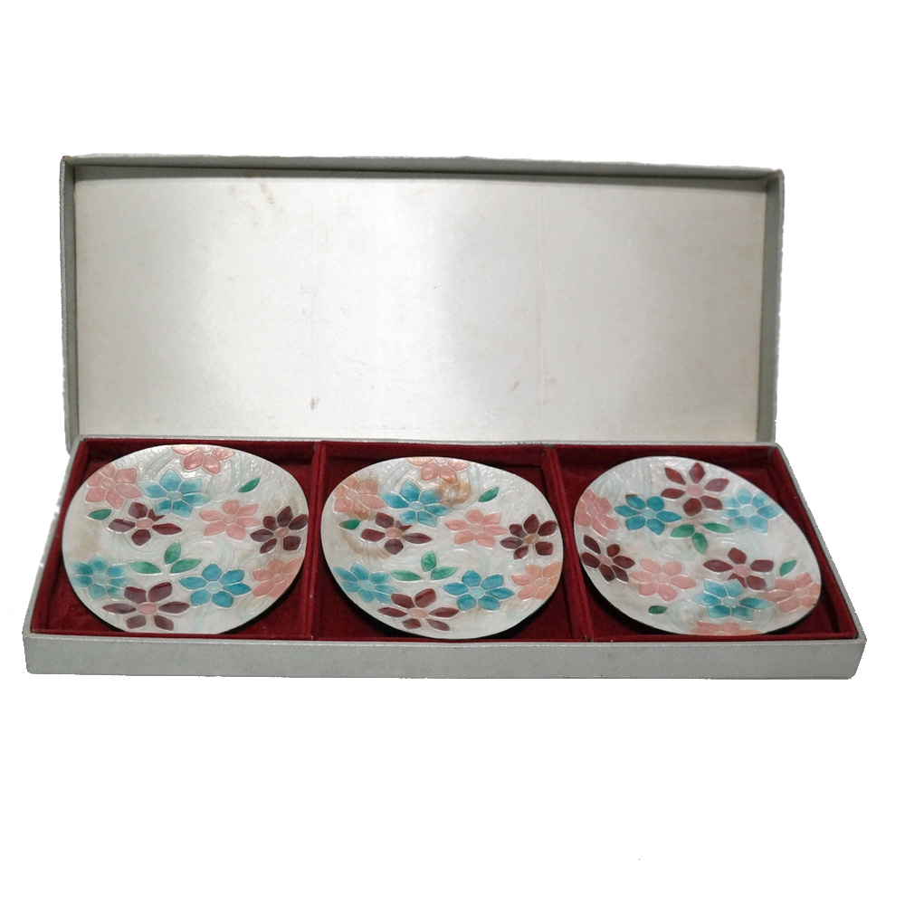 일본에서 오래전에 만들어진 옻칠 칠보접시 3P 입니다.