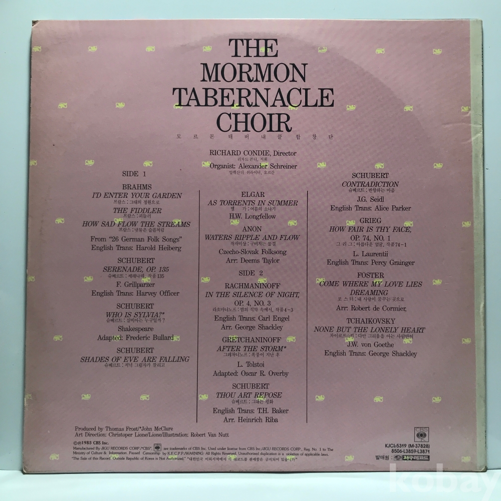 LP 22,480-54 THE MORMON TABERNACLE CHOIR - Serenade _ 자켓 EX 알판 EX 85 년 국내반