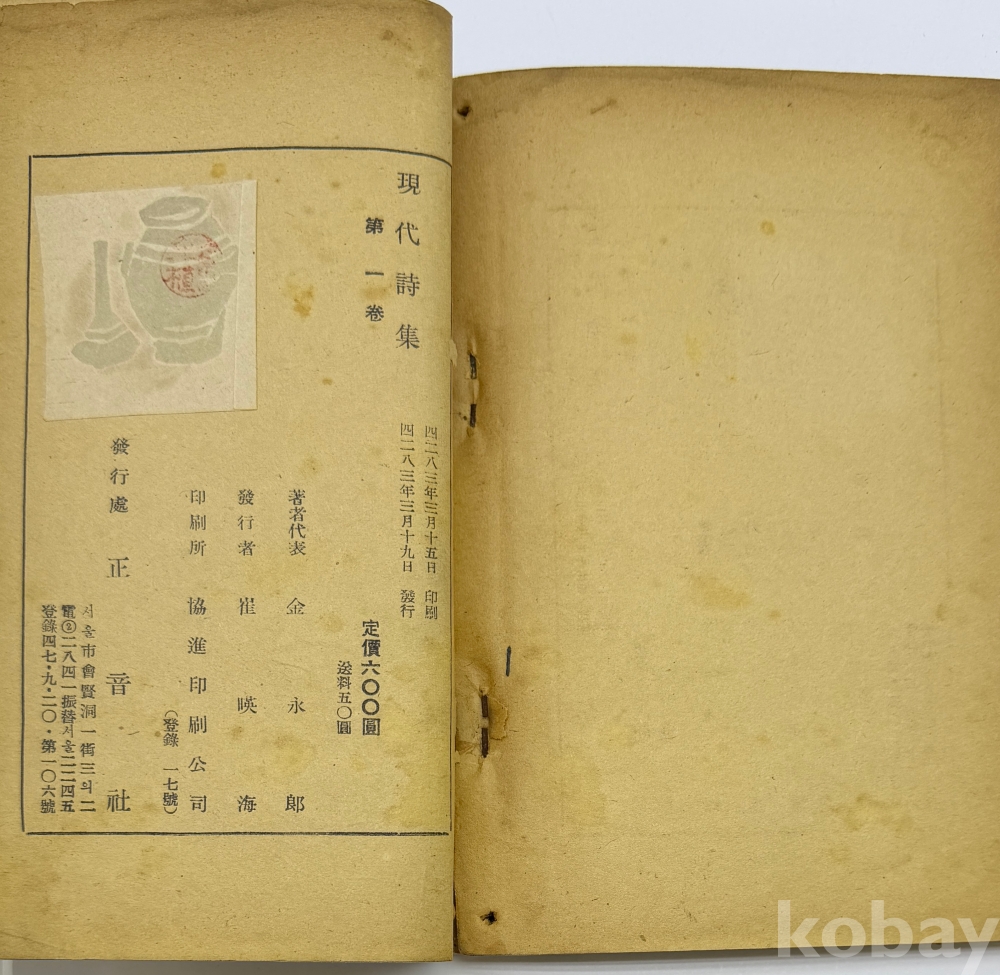 물 품 명 | <좋-았書! 1탄> [55] 1950년 정지용, 김영랑, 김기림, 노천명의 시가 수록된 [현대시집] 제1권 1책 | |||||