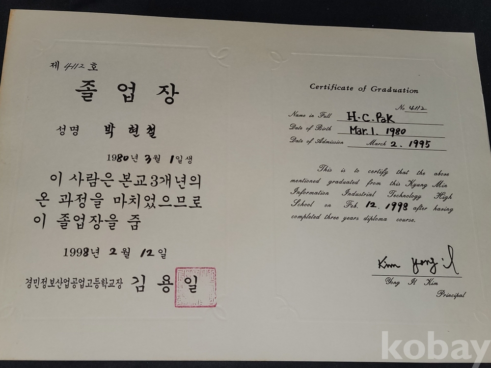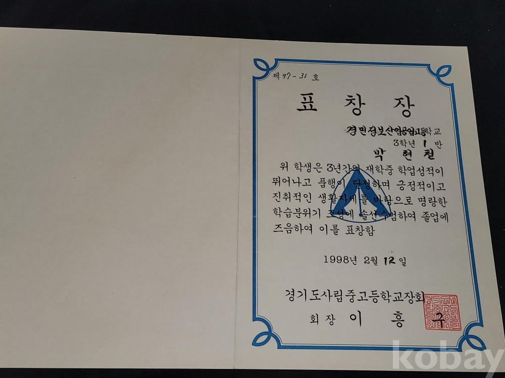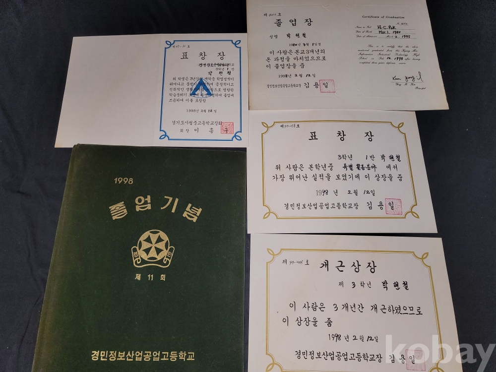 빈티지 1998년 경민정보산업공업고등학교 졸업앨범과 상장, 졸업장 등 일괄입니다.