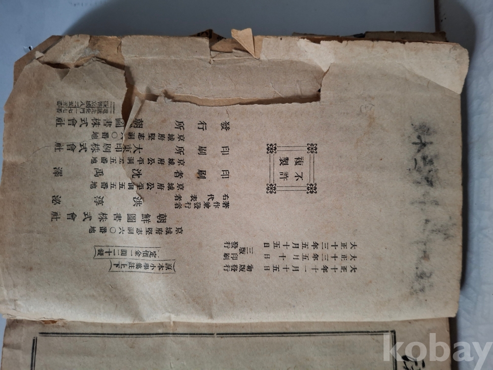 태; 세월의 흔적으로 종이가 많이 변색되고 끝부분이 마모되었지만 제목과 발행 연도를 명확히 확인할수