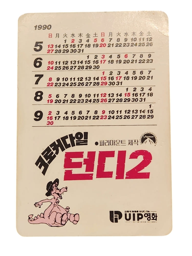 희귀근대자료 - 영화카드 1990년 던디2 영화카드 (영화갤린더)