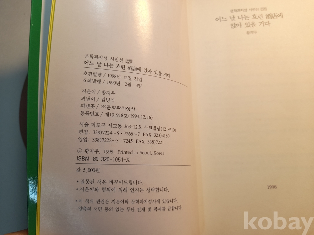 문락과 지성 시인선 * 황지우 시집 어느 날 나는 흐린주점에 앉아 있을 것이다