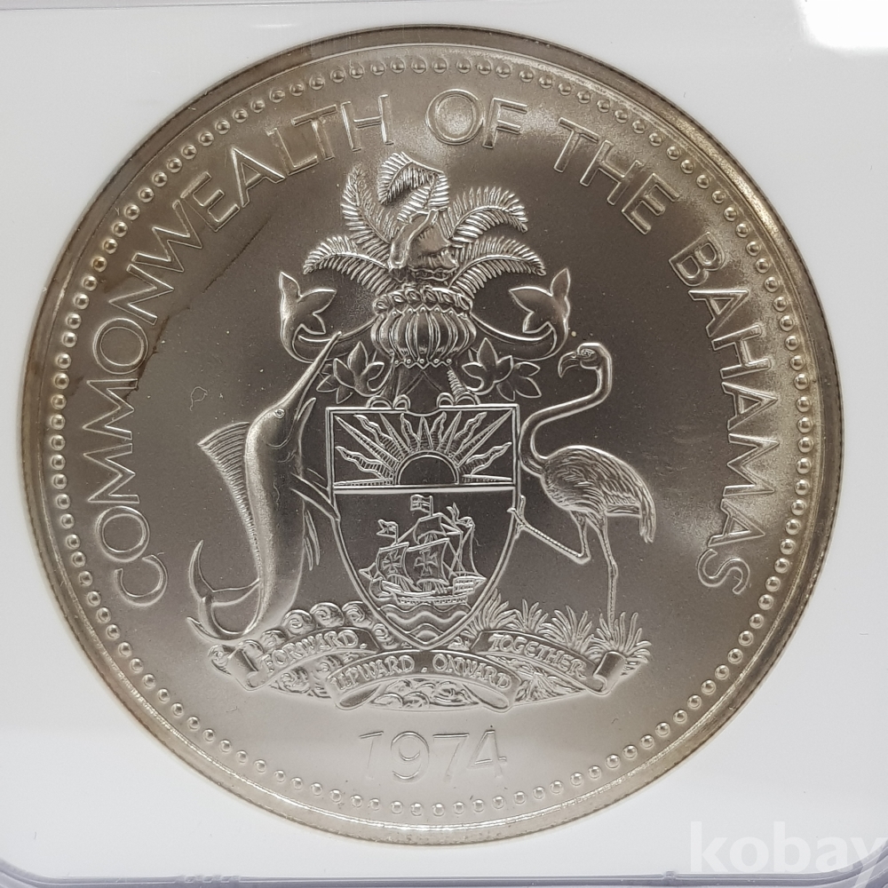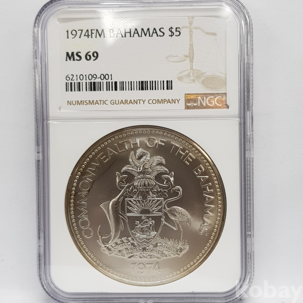 - 1974년 바하마 5달러 NGC MS 69 그레이딩 주화
