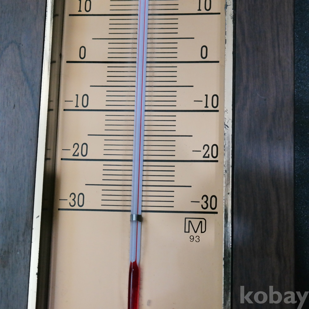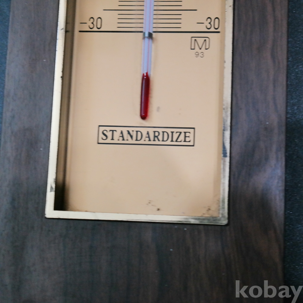 몸통이 프라스틱으로 만들어진 오래된 나뭇결문양 온도계 입니다.