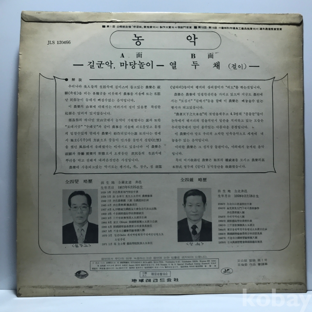 LP 81,350-22 지구레코드 - EXPO 70에서 빛난 농악 _ 자켓 EX+ 알판 EX+ 71 년 국내반
