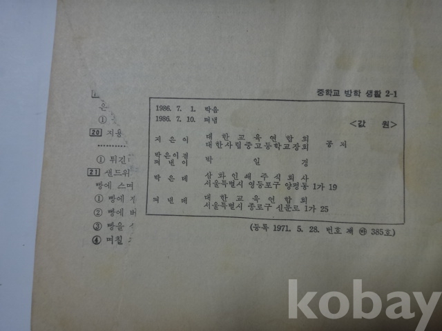 (중학교 여름) 방학 생활 2 - 무지개 이야기, 로켓의 역사와 원리, 첨단기술과 반도체의 이용 등 (1986년)