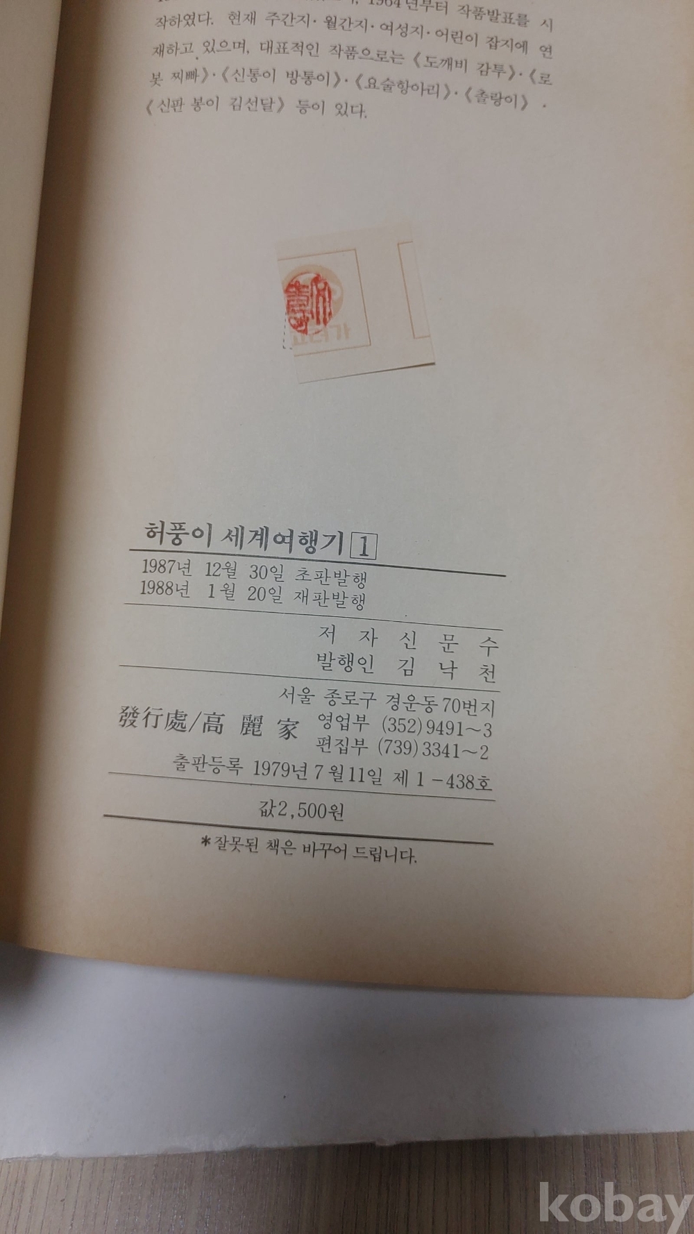 1987년 신문수 작 허풍이세셰여행기 만화책입니다