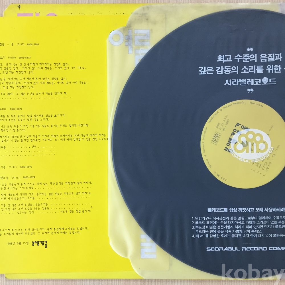 . 가요음반 대부분은 휘어짐이나 손상을 방지하기 위해 무지싱글자킷을 하나 더 사용하여 보관되었던 음반들입니다.