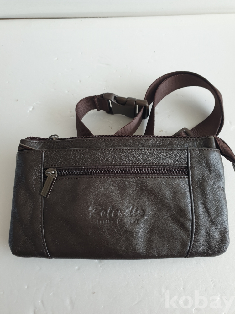 [천원경매] 3-023 브라운 컬러의 가죽 힙색(사용감있음, 23*13cm)