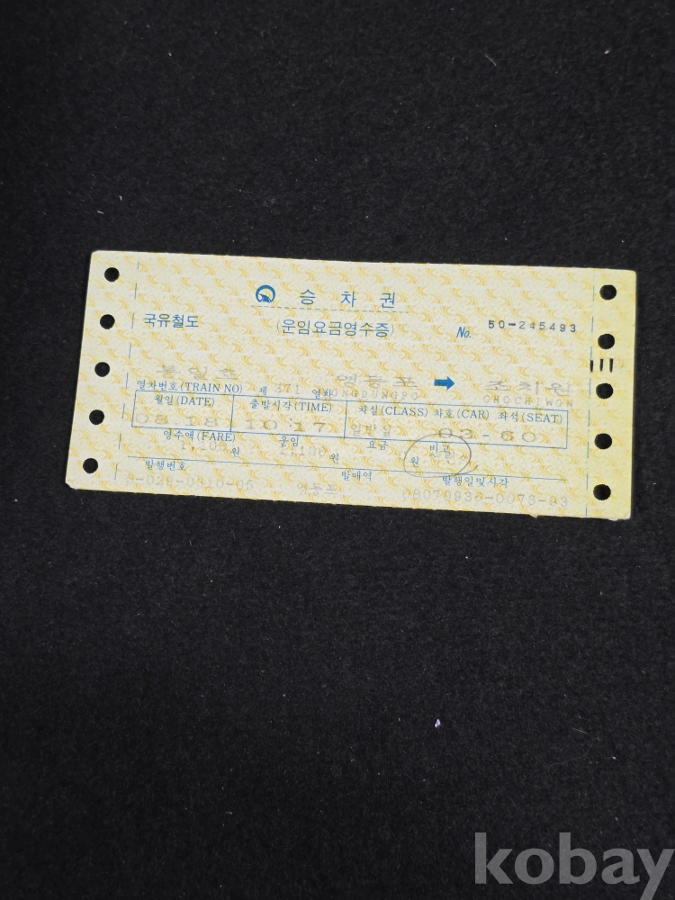 (((철도자료/지하철자료))) 오래전 국유철도 승차권 (통일호) (영등포-조치원)