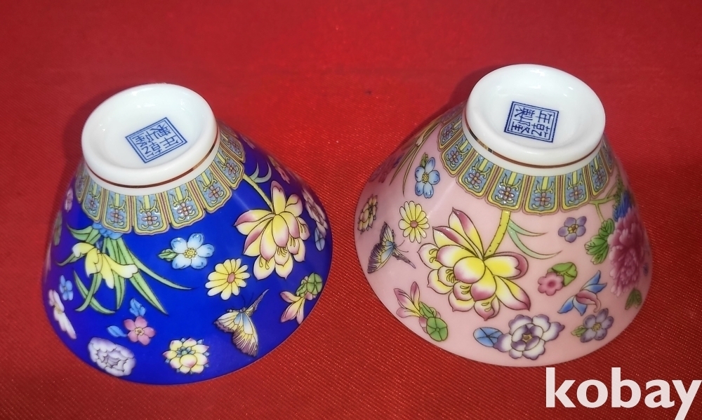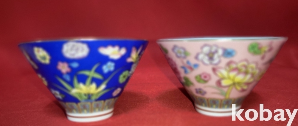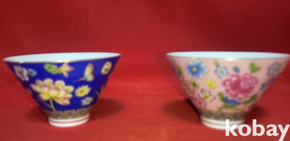 경덕진제(景德鎭製) 분채(粉彩) 화훼문( 花卉紋) 다완 (茶碗) 2개 입니다,