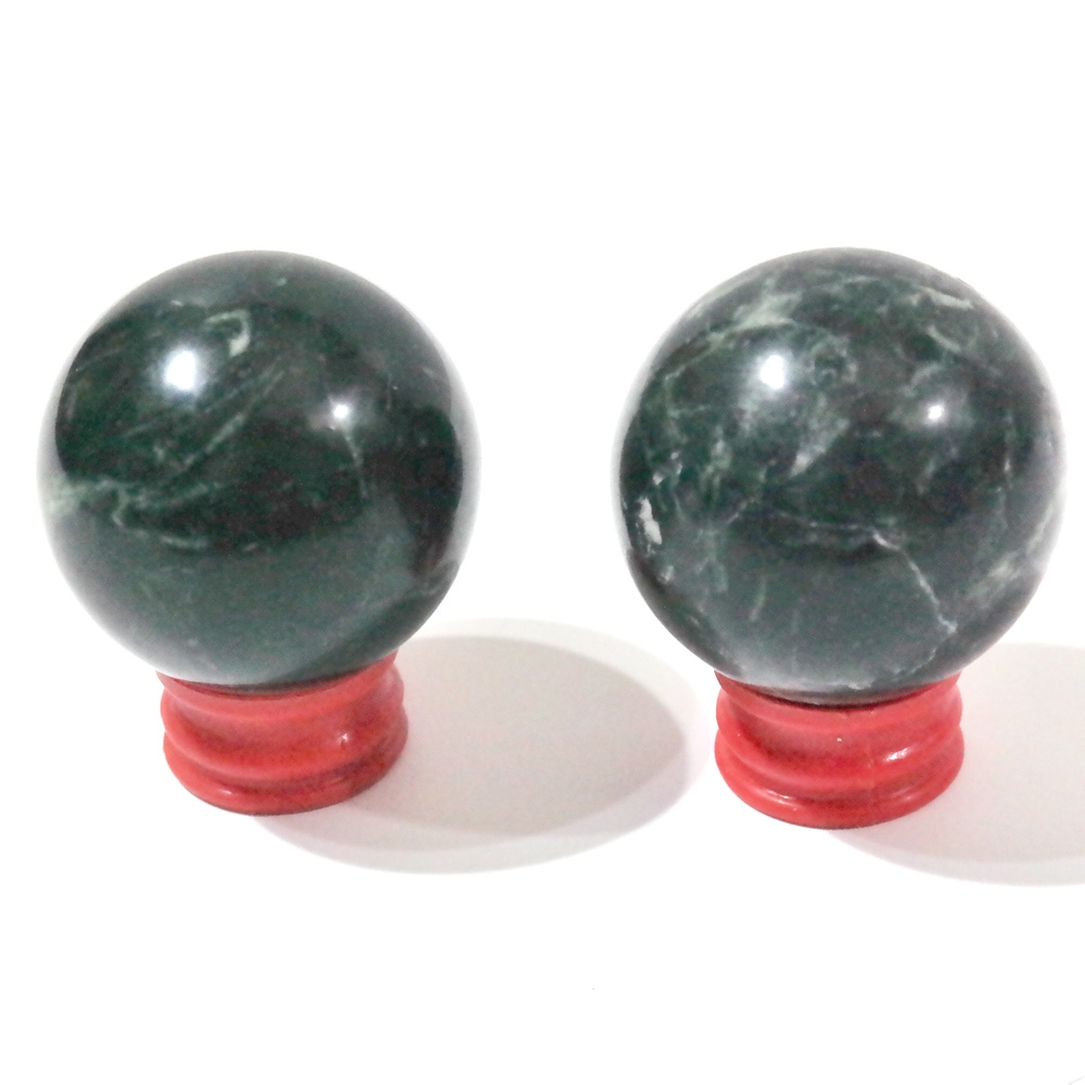 매우 짙은 녹색의 원석으로 만들어진 구 2P 입니다.