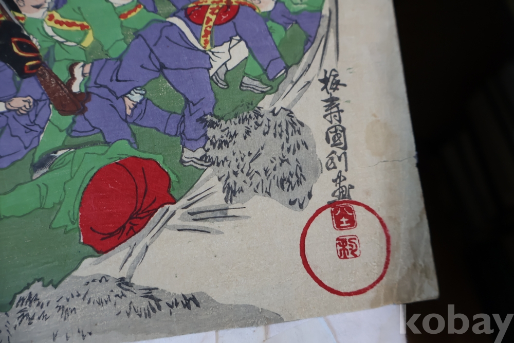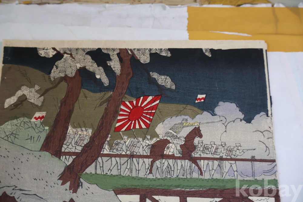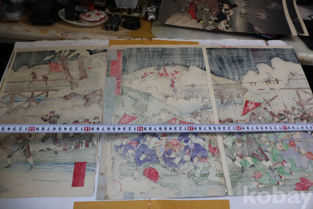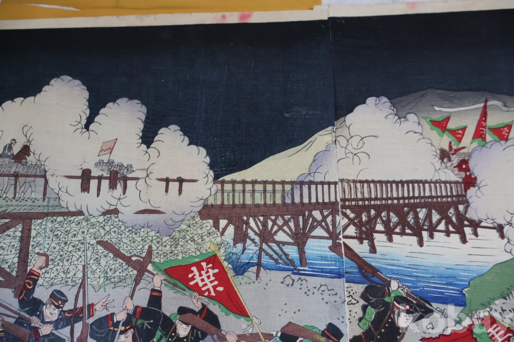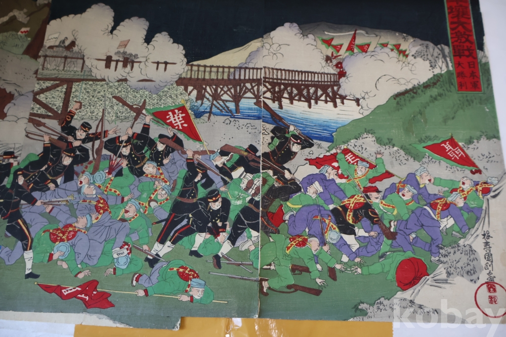 청군과 일본 군의 전쟁 평양 임니다 당시 전쟁 상황을 알린 오리지날 목판화 3 세트 연결 화 이며 세월의 흔적을 가진 귀한 목판화 임니다