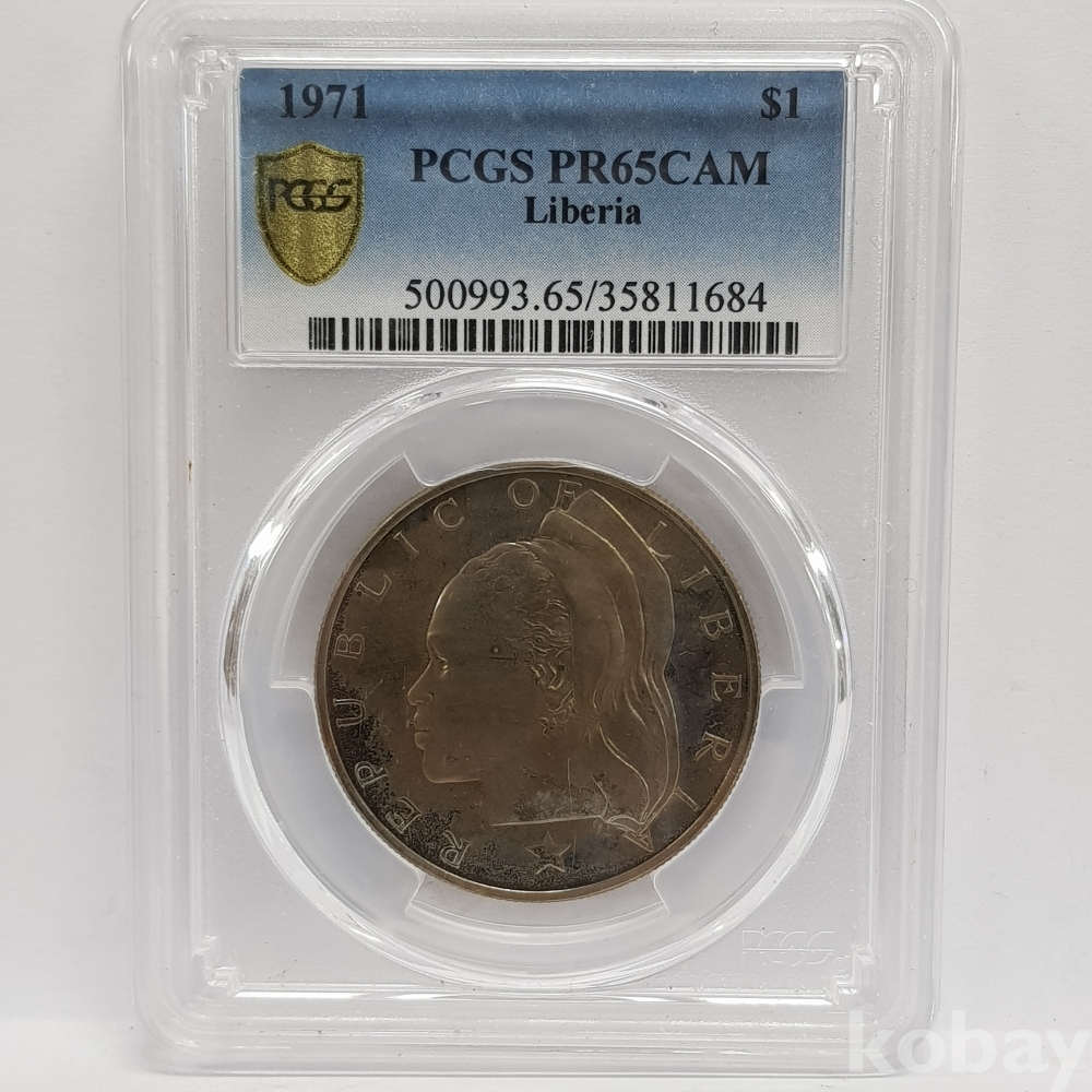 - 1971년 라이베리아 1달러 PCGS PR 65 그레이딩 주화