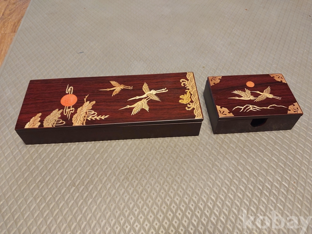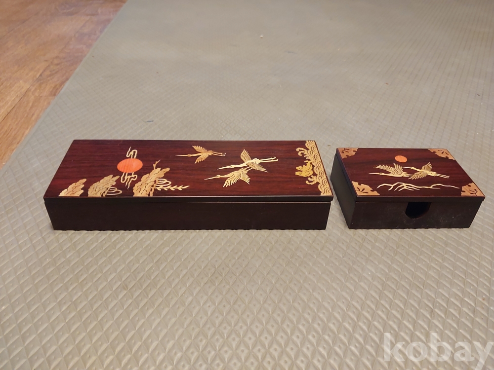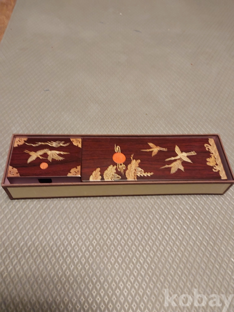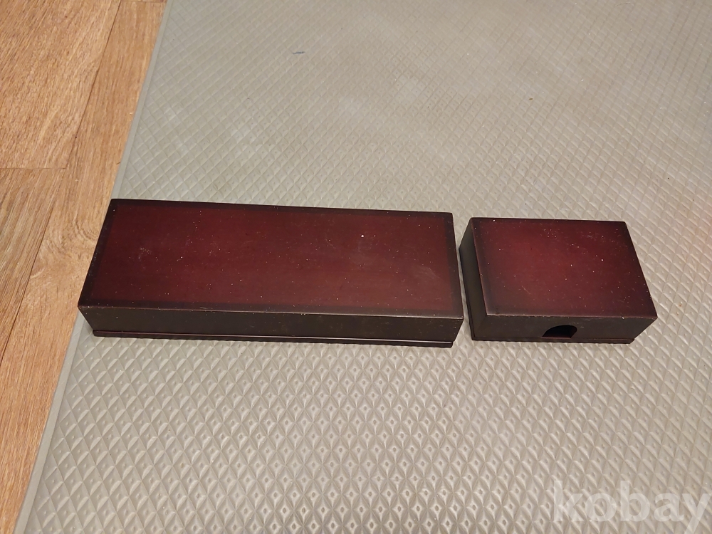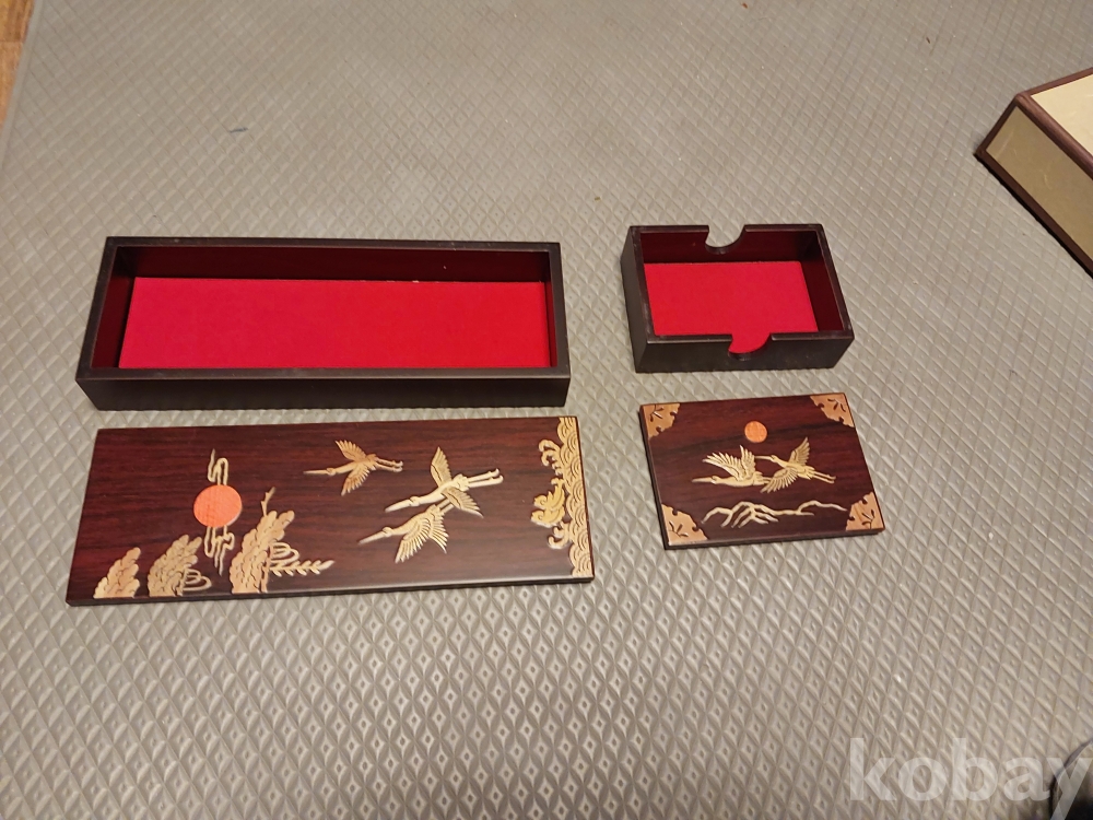 실사용에 적합한 티크목 목상감 필기구함. 명함집 2점으로