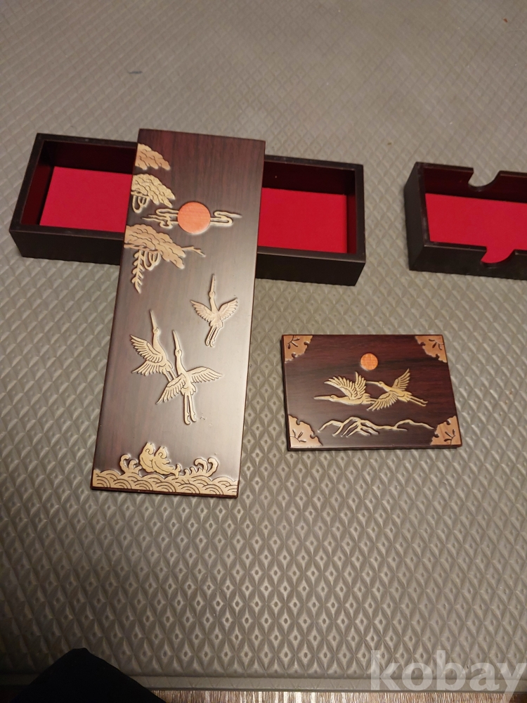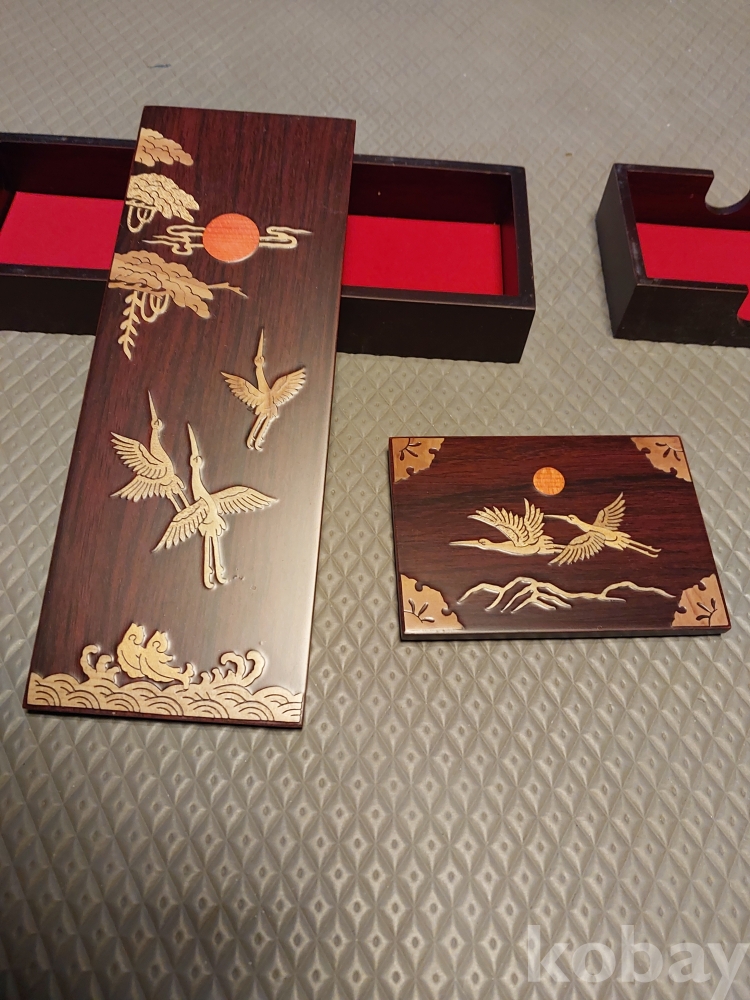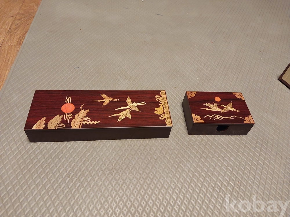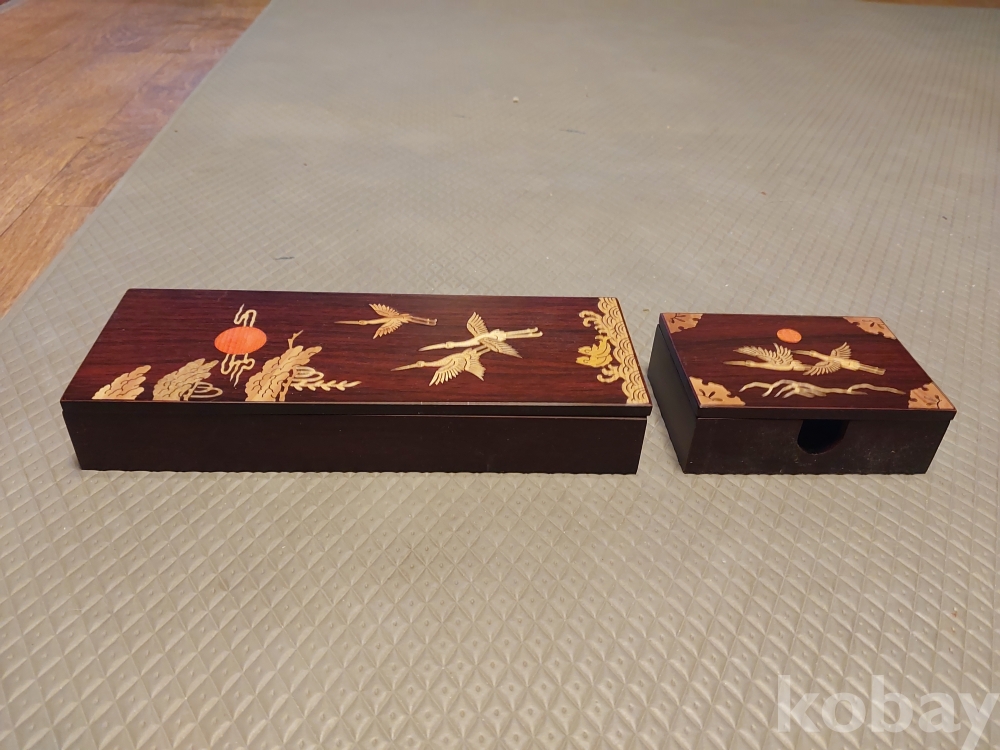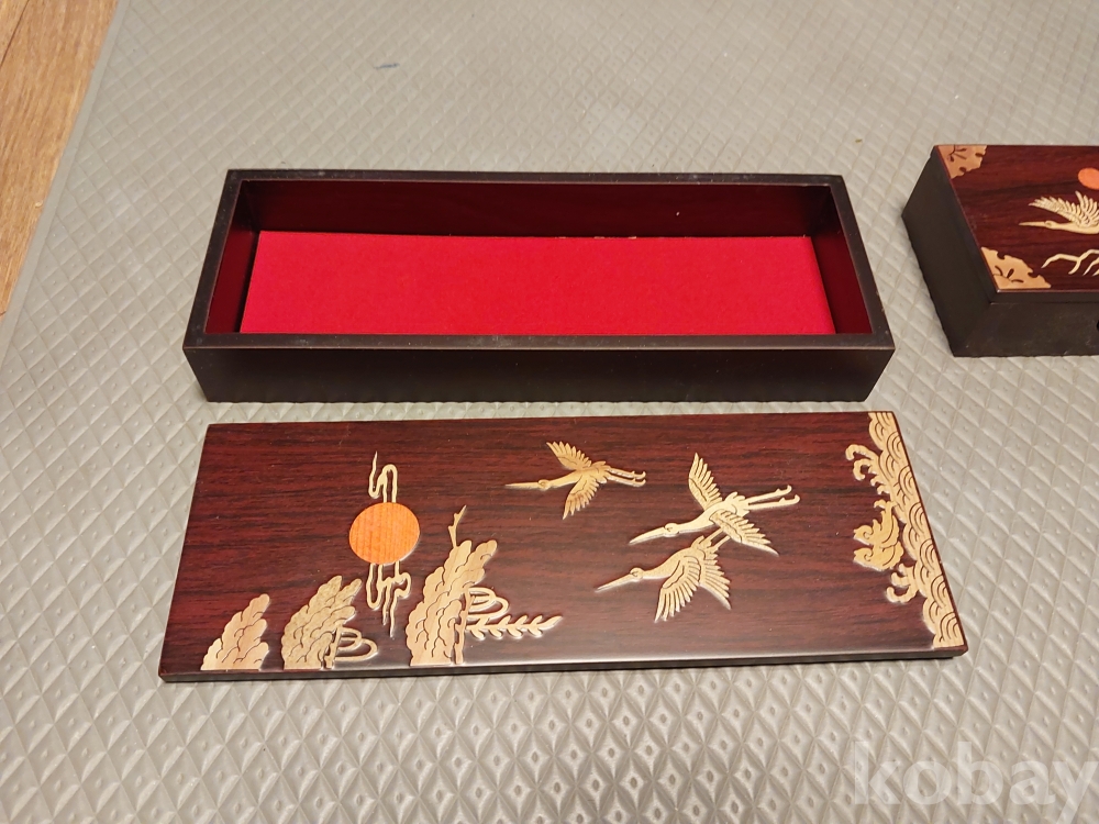 실사용에 적합한 티크목 목상감 필기구함. 명함집 2점으로