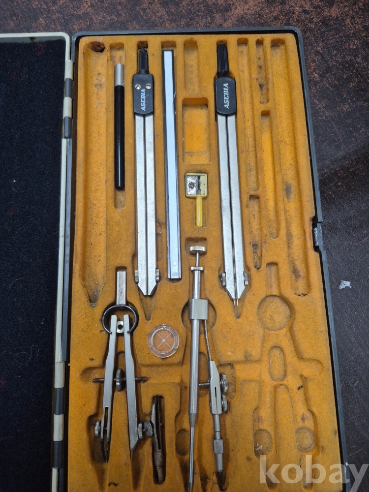 1970-80년대 ASCOLA 브랜드 제도용 콤파스 세트 2점 빠진 부분 많아요 메이드 인 독일 & 메이드 인 코리아 26*14*2