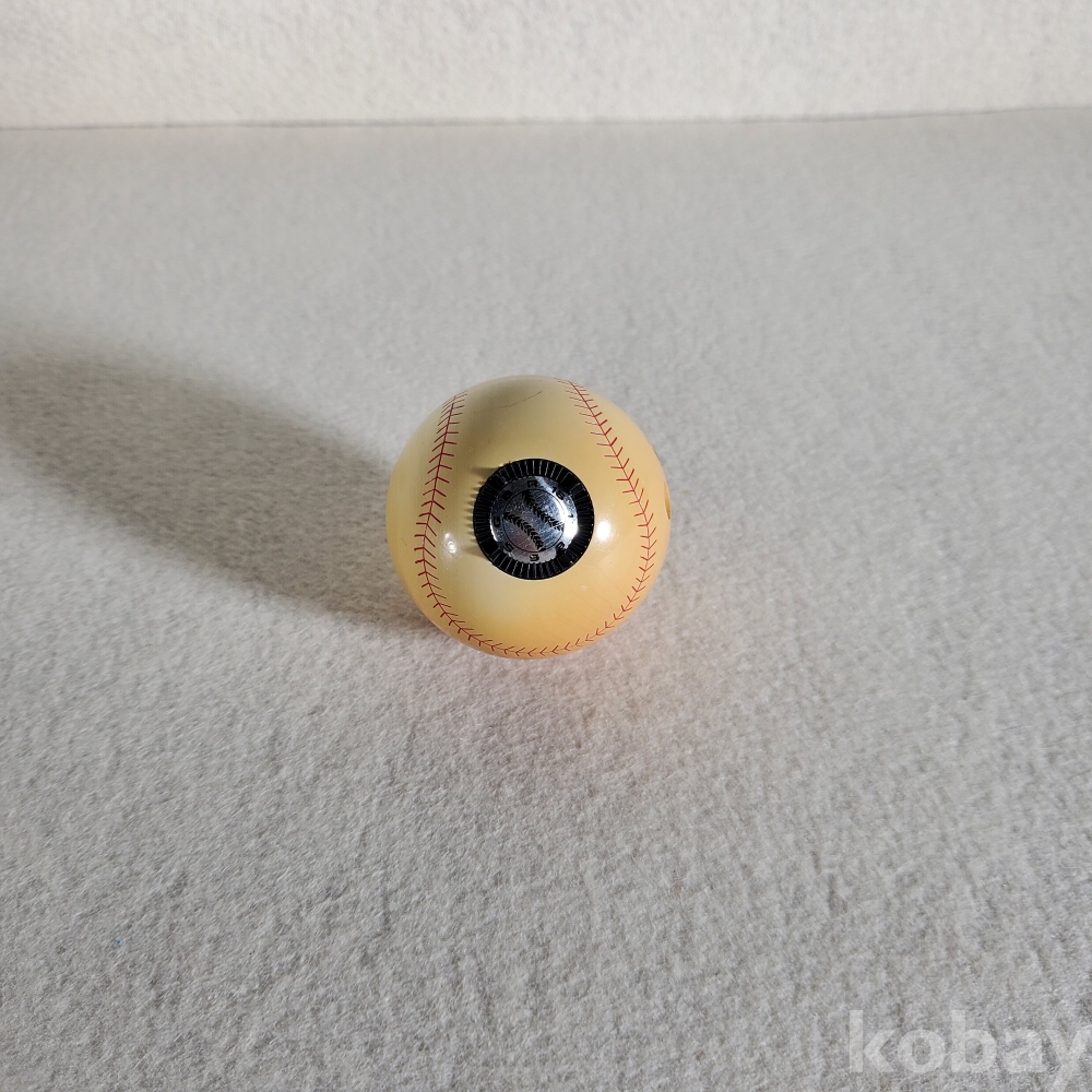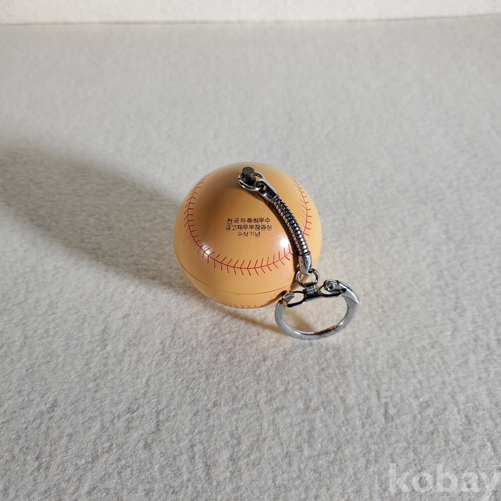 받침대 하단에 선명하게 새겨진 "한중상호신용금고 전국 저축 최우수 금고 재무부장관상 수상 기념"이라는 문구는 이 제품의 출생 배경을 명확히 말해줍니다. 1994년 재무부가 개편되기 이전, 국가 경제를 책임지던 장관으로부터 전국 1등의 영예를 안은 금고가 그 벅찬 성과를 대대적으로 기념하기 위해 특별히 주문 제작한 영광의 징표인 것입니다. 여기에 당시 온 국민을 열광케 했던 최고 인기 스포츠인 '야구'의 형태를 과감하게 차용하여, 책상 위나 장식장에 두는 것만으로도 흐뭇한 미소를 짓게 만드는 멋진 오브제로 탄생했습니다.