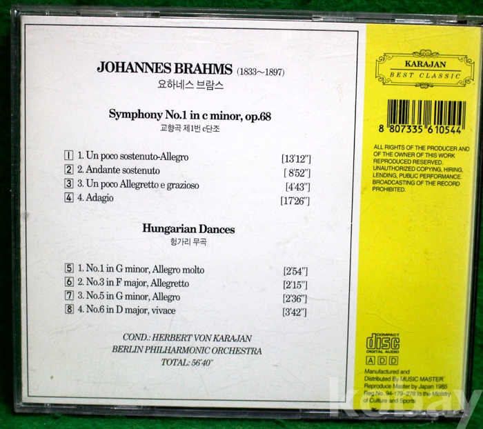 (CD) 카라얀 베스트 클래식 : 브람스 - 교향곡 제1번 c 단조 / 헝가리 무곡...