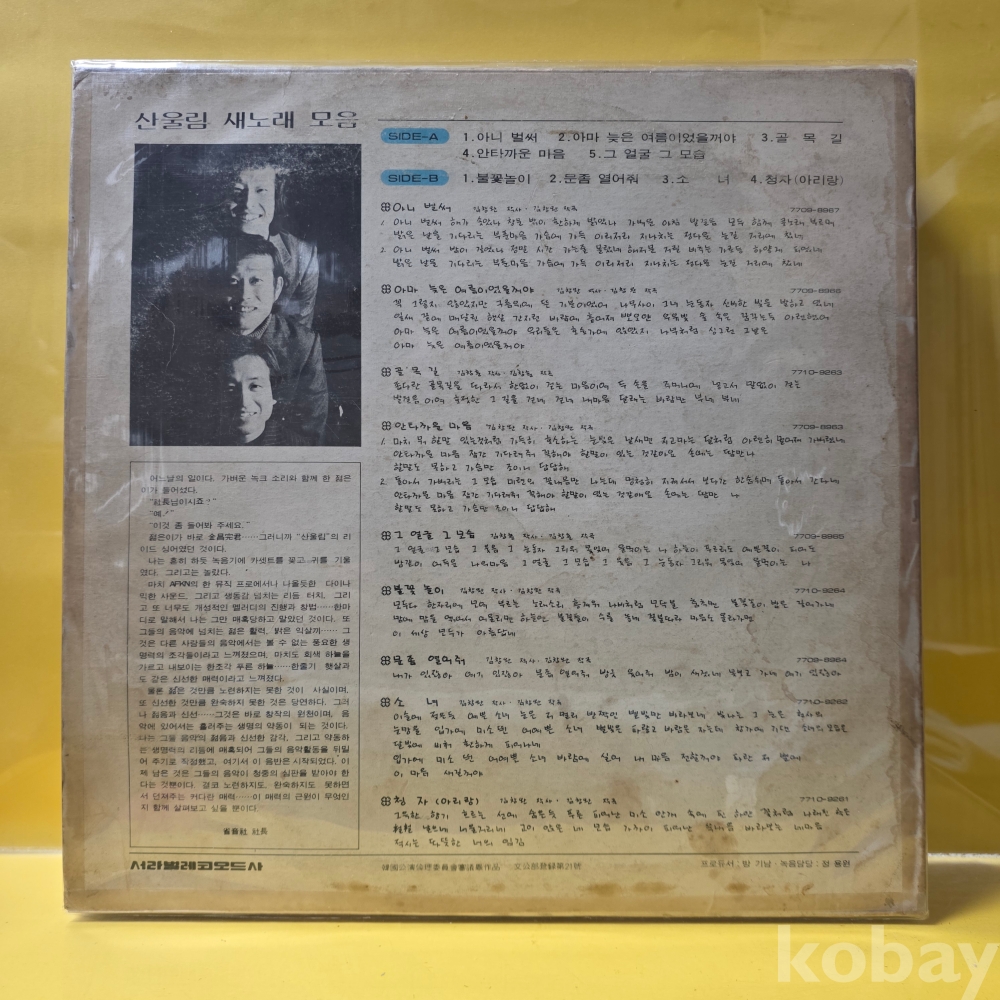 | 자켓상태 | EX : 약간의 마모, 모서리 찢김 존재 | 음반상태 | EX : 재생에 영향 없는 가벼운 기스 존재 | 발매정보 | 초반 | 가사지여부 | 무 |