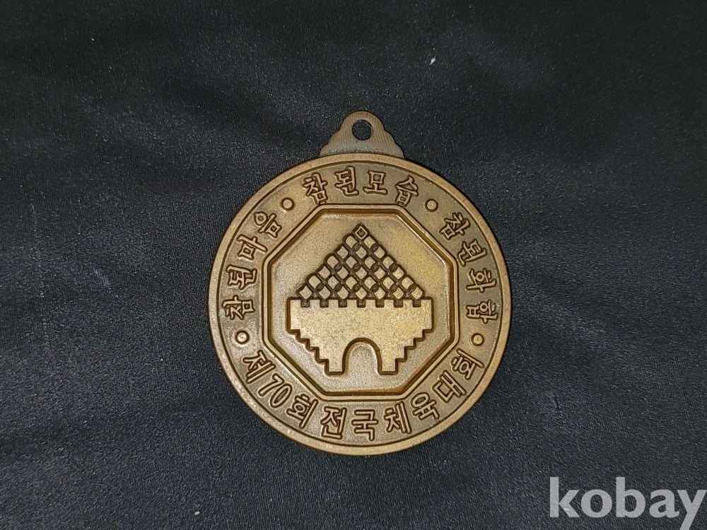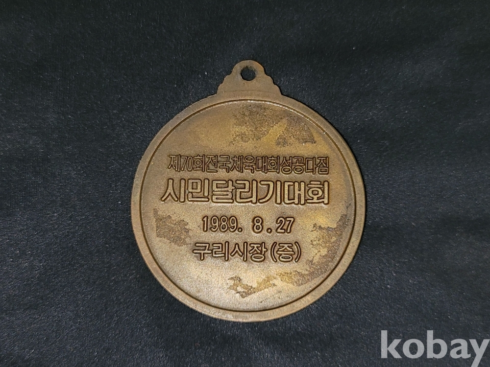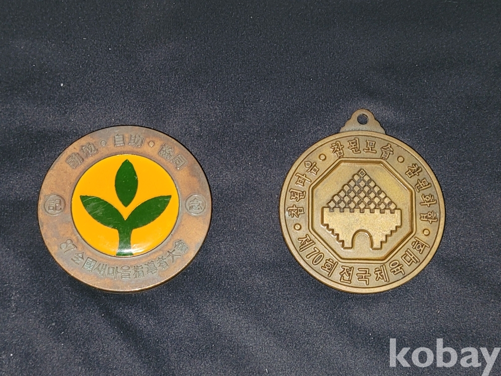 빈티지 세월 감이 느껴지는 희귀한 1987년 전국 새마을 지도자대회 기념 전두환 메달과 1989년 전국체전 성공 기원 구리 시민 달리기 대회 메달 등 2종 일괄입니다.