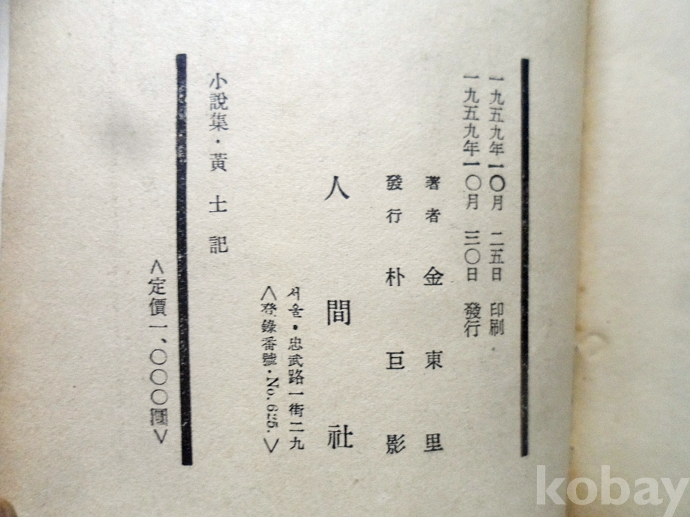 1959년 황토기 김동 /인간사 /문집과 창간호 특별전