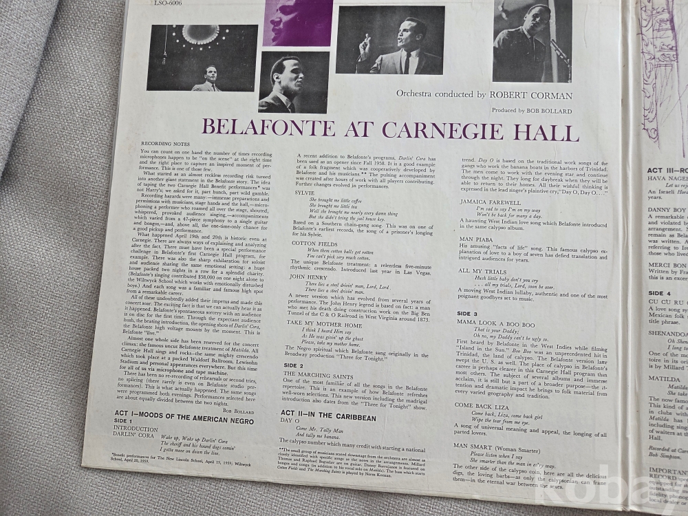 미국의 전설적인 가수이자 배우인 해리 벨라폰테(Harry Belafonte)의 대표적인 라이브 명반인 "Belafonte at Carnegie Hall"의 앨범 입니다