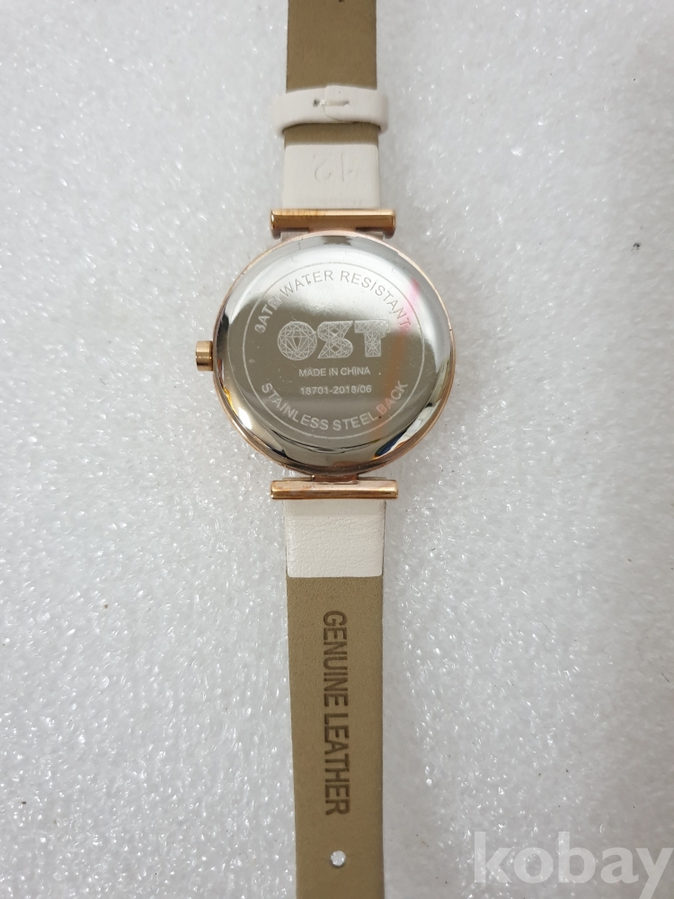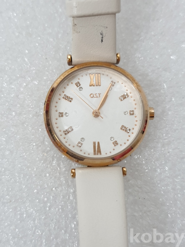 {천원경매} Y-3-1286 OST 흰색 가죽줄 손목시계 (작동확인안됨)